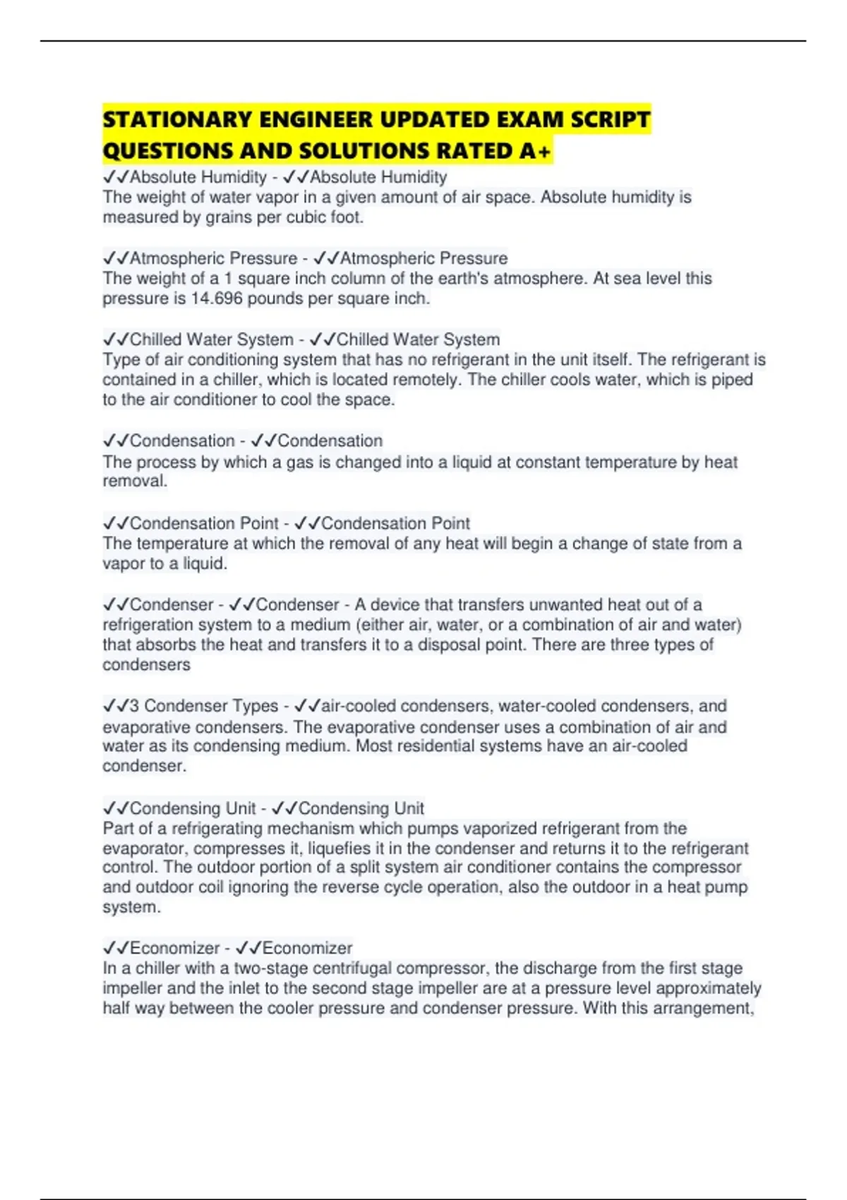 STATIONARY ENGINEER UPDATED EXAM SCRIPT QUESTIONS AND SOLUTIONS RATED A.pdf