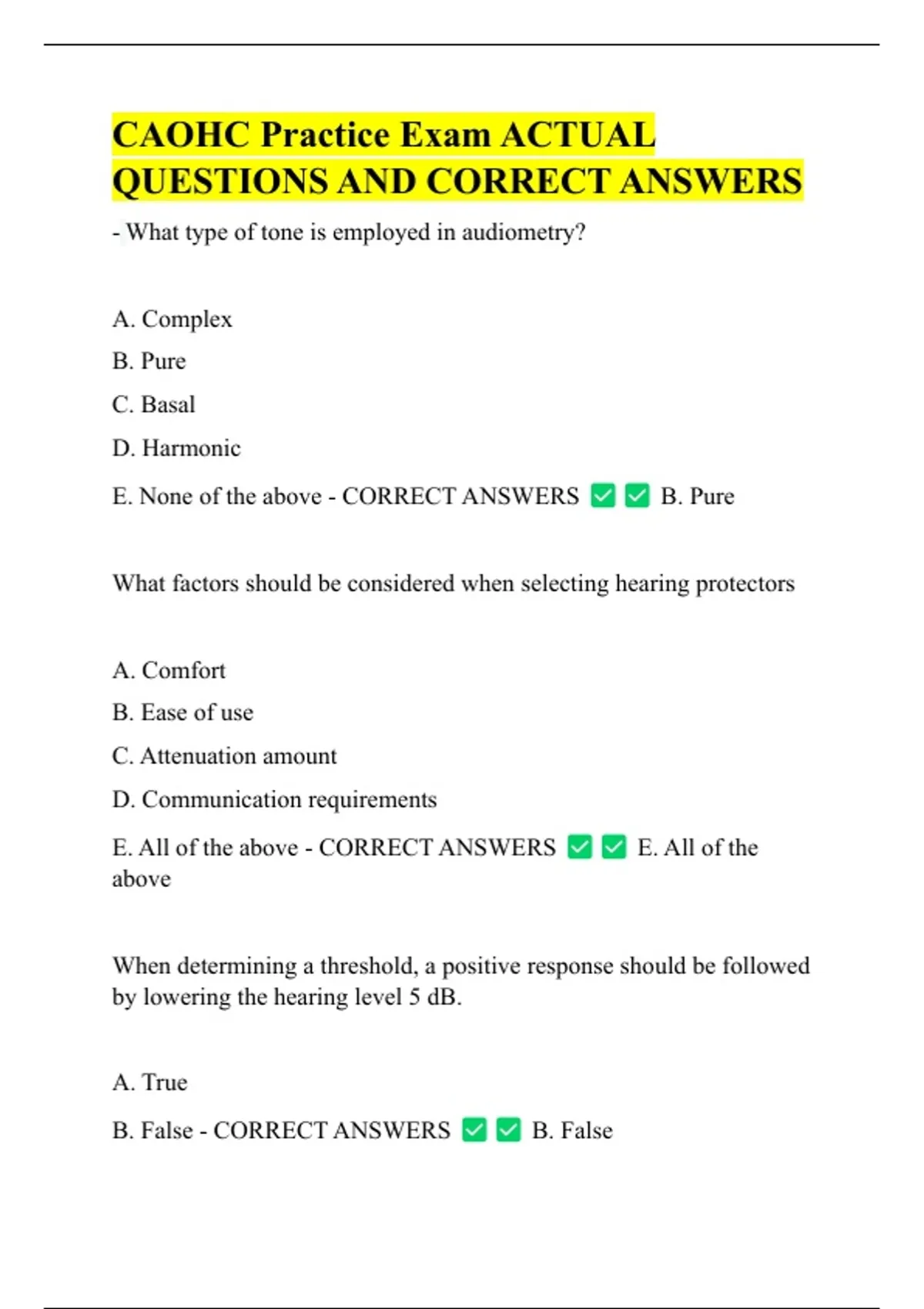CAOHC Practice Exam ACTUAL