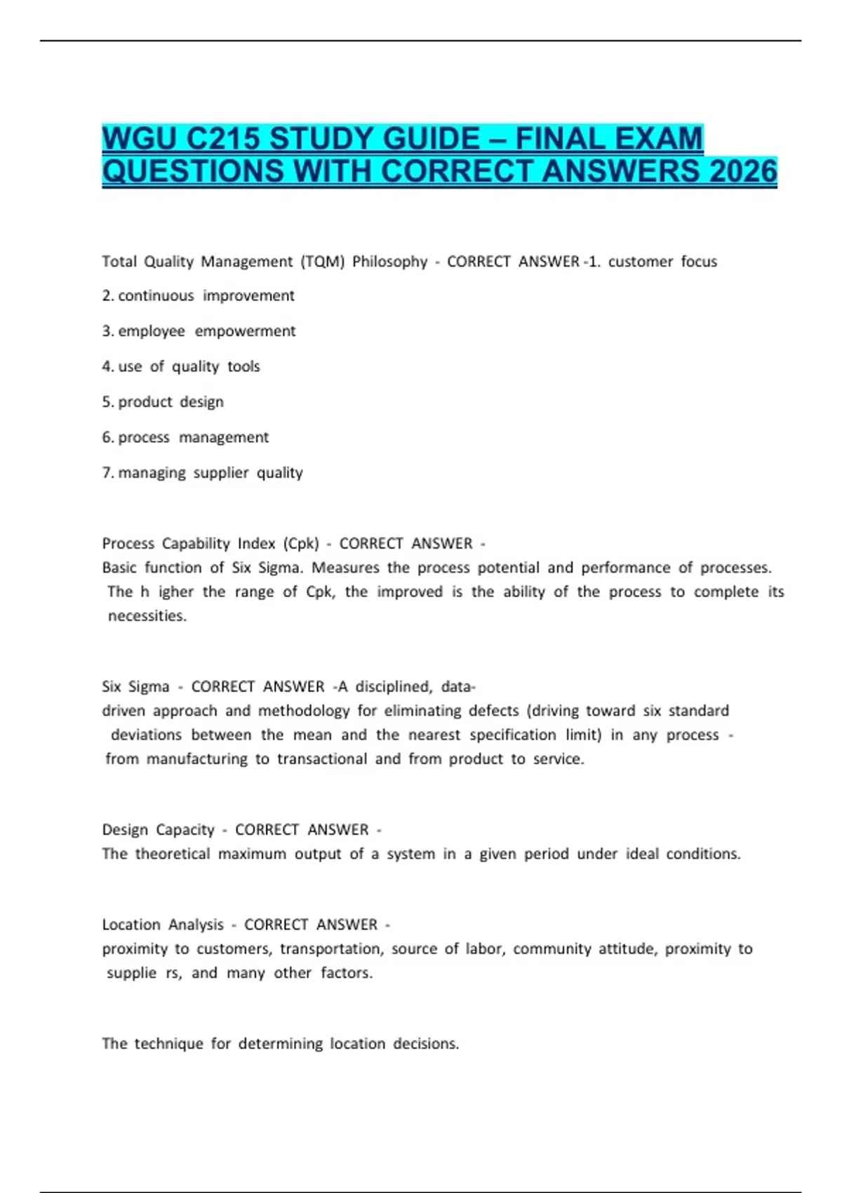 WGU C215 STUDY GUIDE – FINAL EXAM QUESTIONS WITH CORRECT ANSWERS 2026