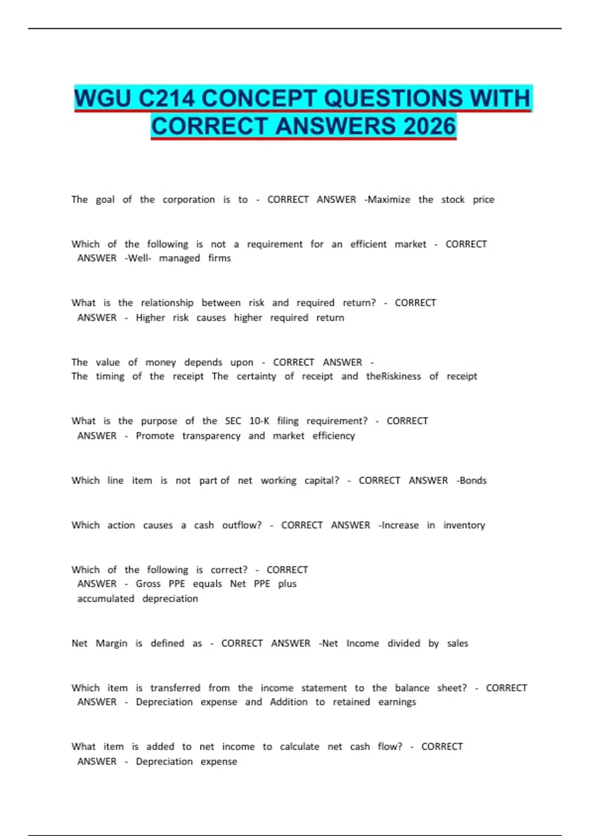 WGU C214 CONCEPT QUESTIONS WITH CORRECT ANSWERS 2026