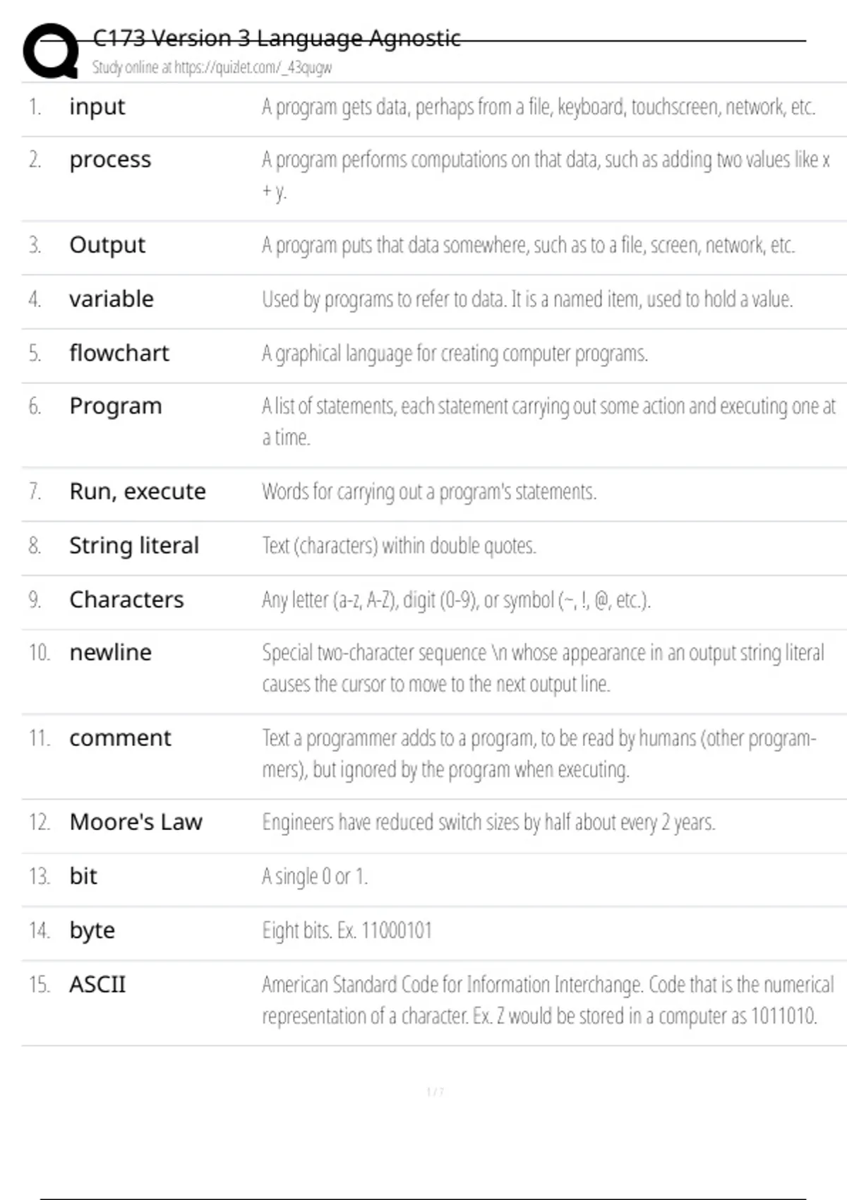 15. ASCII American Standard Code for Information Interchange. Code that is the numerical