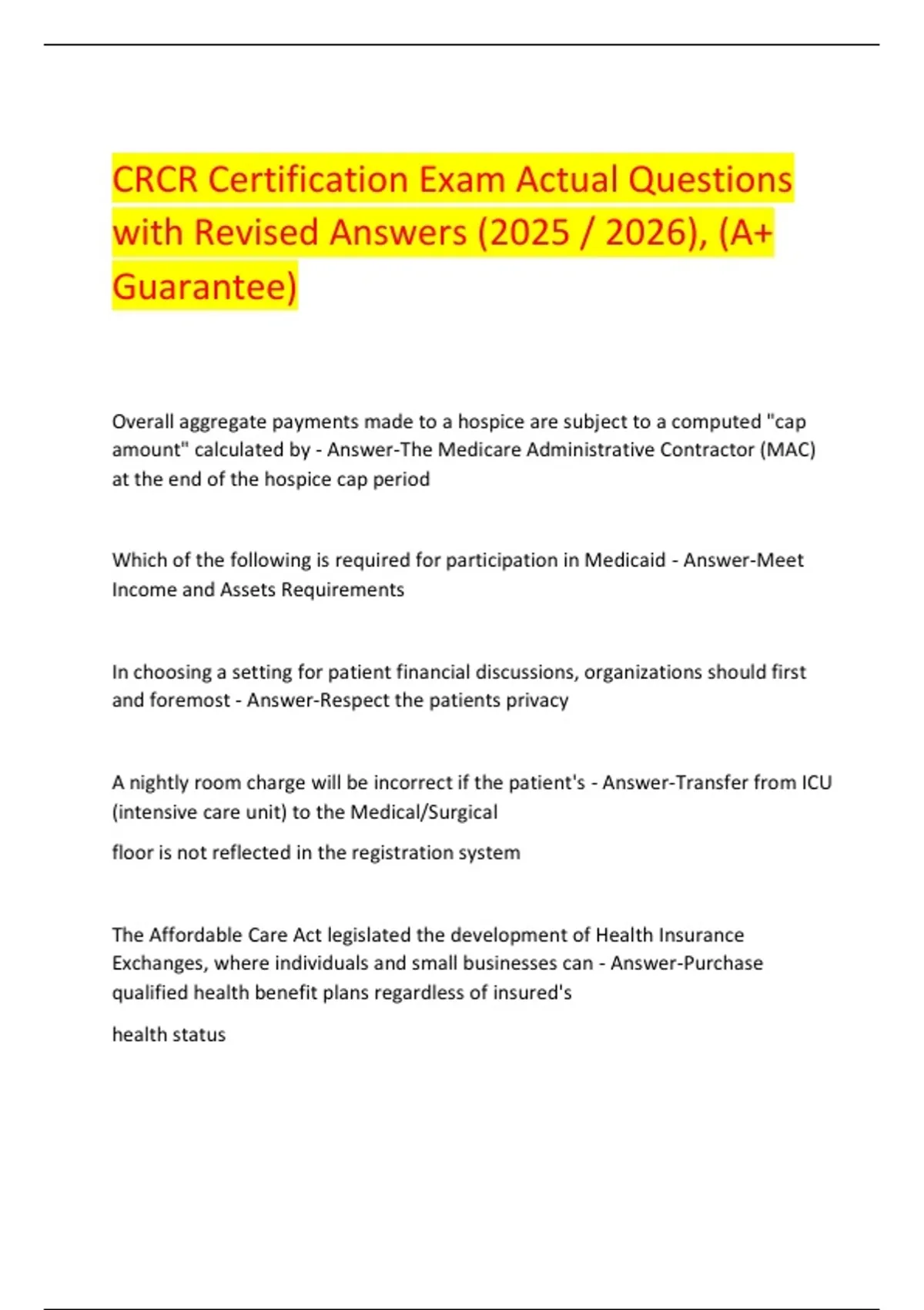 CRCR Certification Exam Actual Questions with Revised Answers (2025 / 2026), (A+ Guarantee)