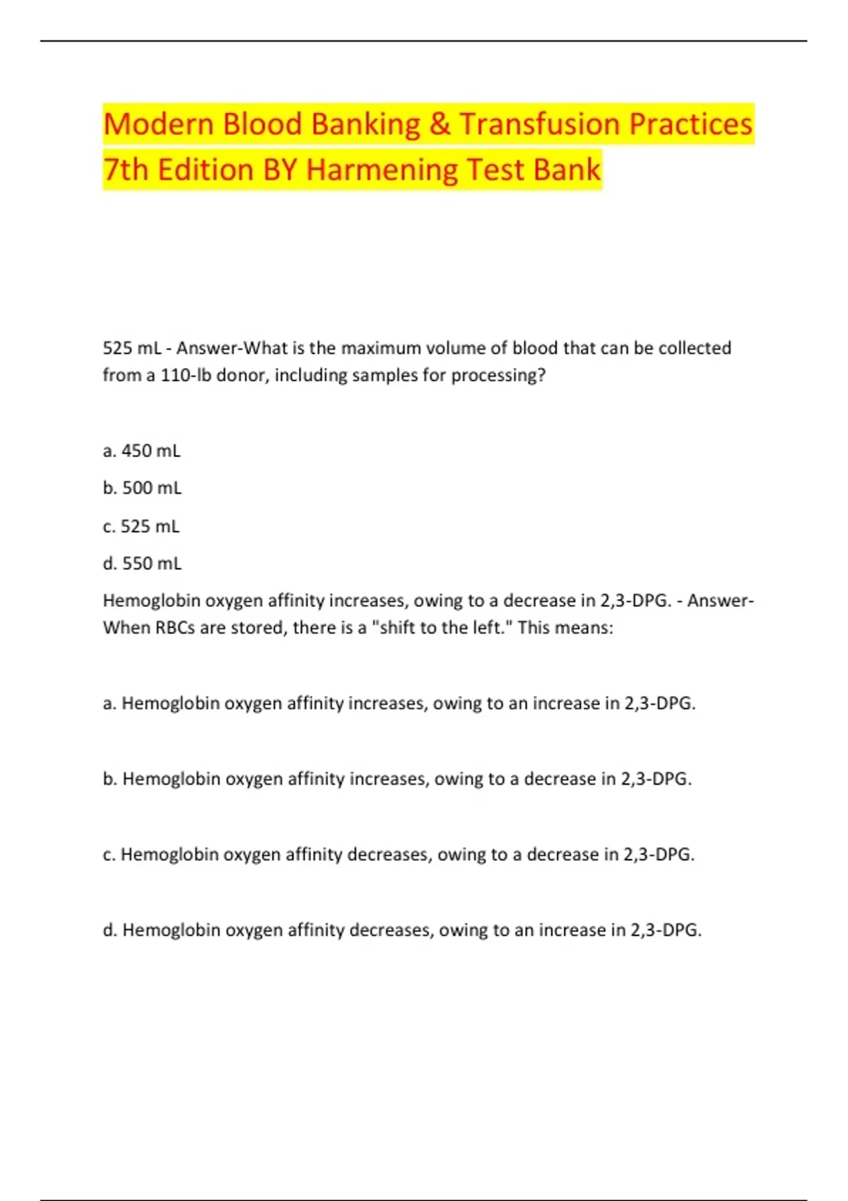 525 mL - Answer-What is the maximum volume of blood that can be collected