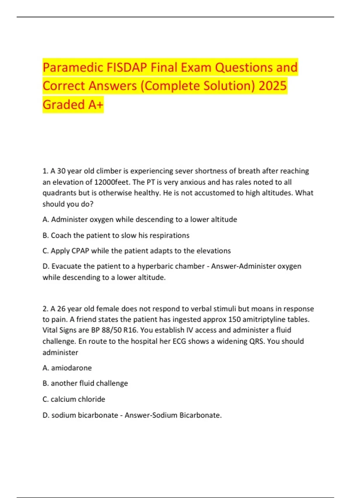 1. A 30 year old climber is experiencing sever shortness of breath after reaching