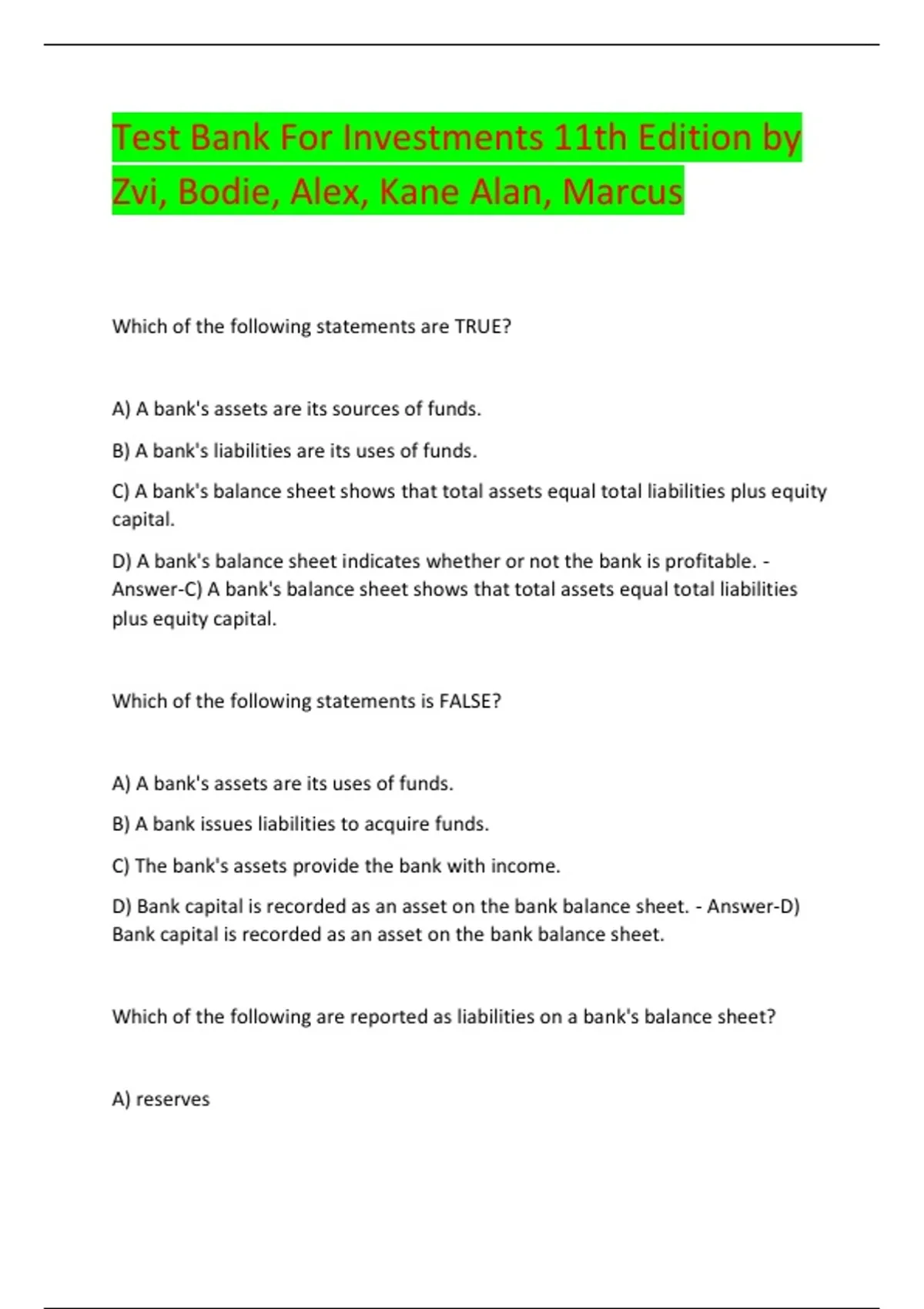 Test Bank For Investments 11th Edition by Zvi, Bodie, Alex, Kane Alan, Marcus