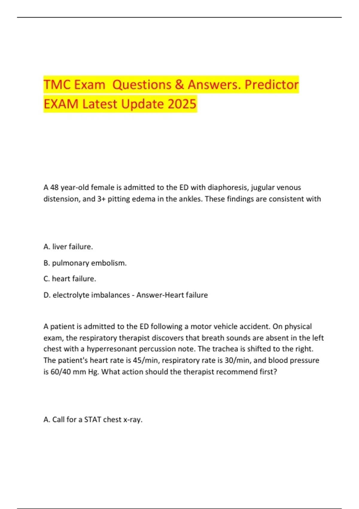 TMC Exam Questions & Answers. Predictor EXAM Latest Update 2025
