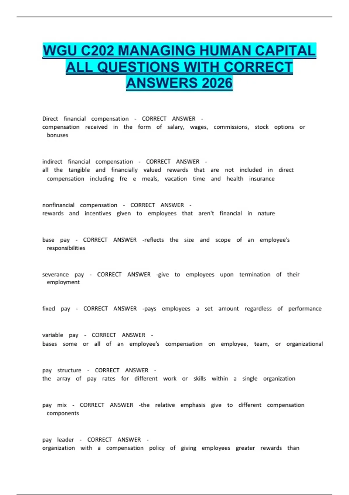 WGU C202 MANAGING HUMAN CAPITAL ALL QUESTIONS WITH CORRECT ANSWERS 2026