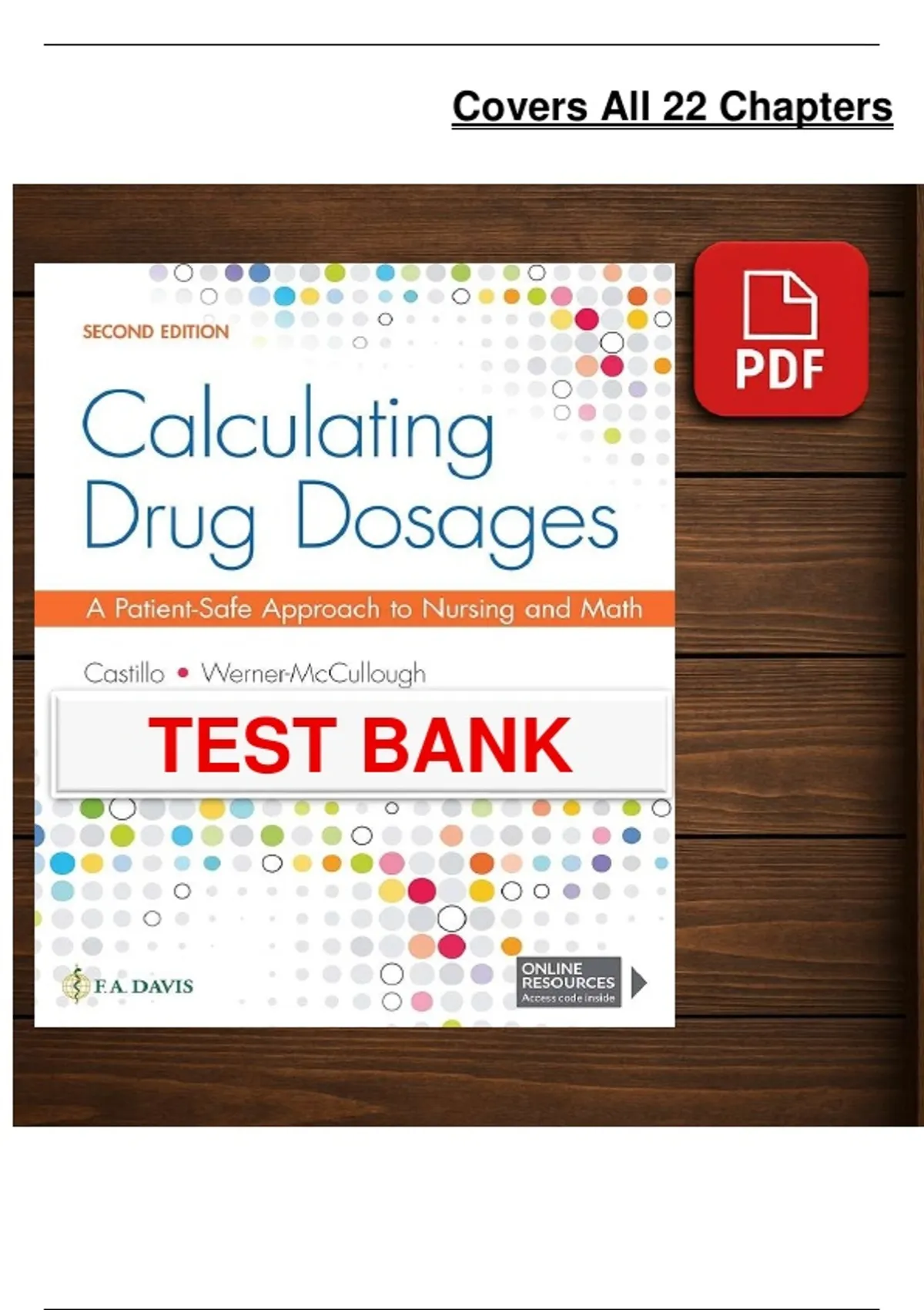 INSTANT PDF DOWNLOAD — Nursing dosage-calculation practice pack aligned to Calculating Drug Dosages: A Patient-Safe Approach to Nursing and Math (2nd Edition). Covers all 22 chapters with step-by-step style practice to build accuracy and confidence in nursing math, safe medication administration concepts, and common dosage-calculation skills for quizzes, check-offs, and finals. Printable/searchable PDF. Independently created study resource—not an official publisher test bank. dosage calculation practice questions, nursing dosage calculations pdf, nursing math workbook, dimensional analysis nursing, ratio and proportion dosage, formula method dosage calc, medication administration safety, drug label interpretation, metric system conversions, household system conversions, apothecary system nursing, oral dosage calculations, parenteral dosage calculations, iv flow rate calculations, drip rate gtt min, infusion pump ml hr, insulin dosage calculations, pediatric dosage calculations, safe dose range calculation, nursing dosage exam prep