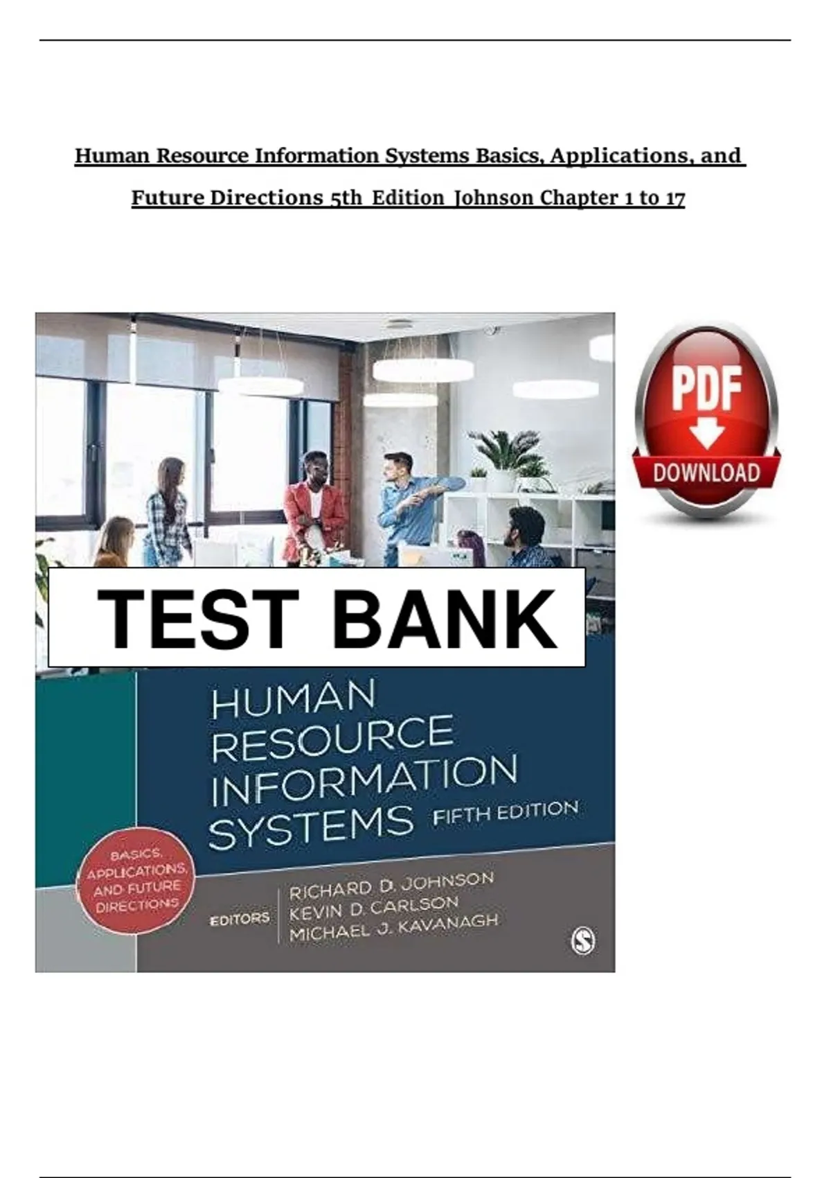This comprehensive solution manual for the 5th edition of Human Resource Information Systems by Johnson covers all 17 chapters, offering detailed solutions to chapter questions and applied exercises. It addresses HRIS fundamentals, system design and implementation, data management, analytics, strategic HRM integration, and future trends in technology. Ideal for students and HR professionals looking to deepen their understanding of HRIS in real-world and academic contexts. HRIS human resource information systems Johnson solutions HR technology data management HR analytics system implementation strategic HRM information systems in HR 5th edition future of HR tech HR software human capital management