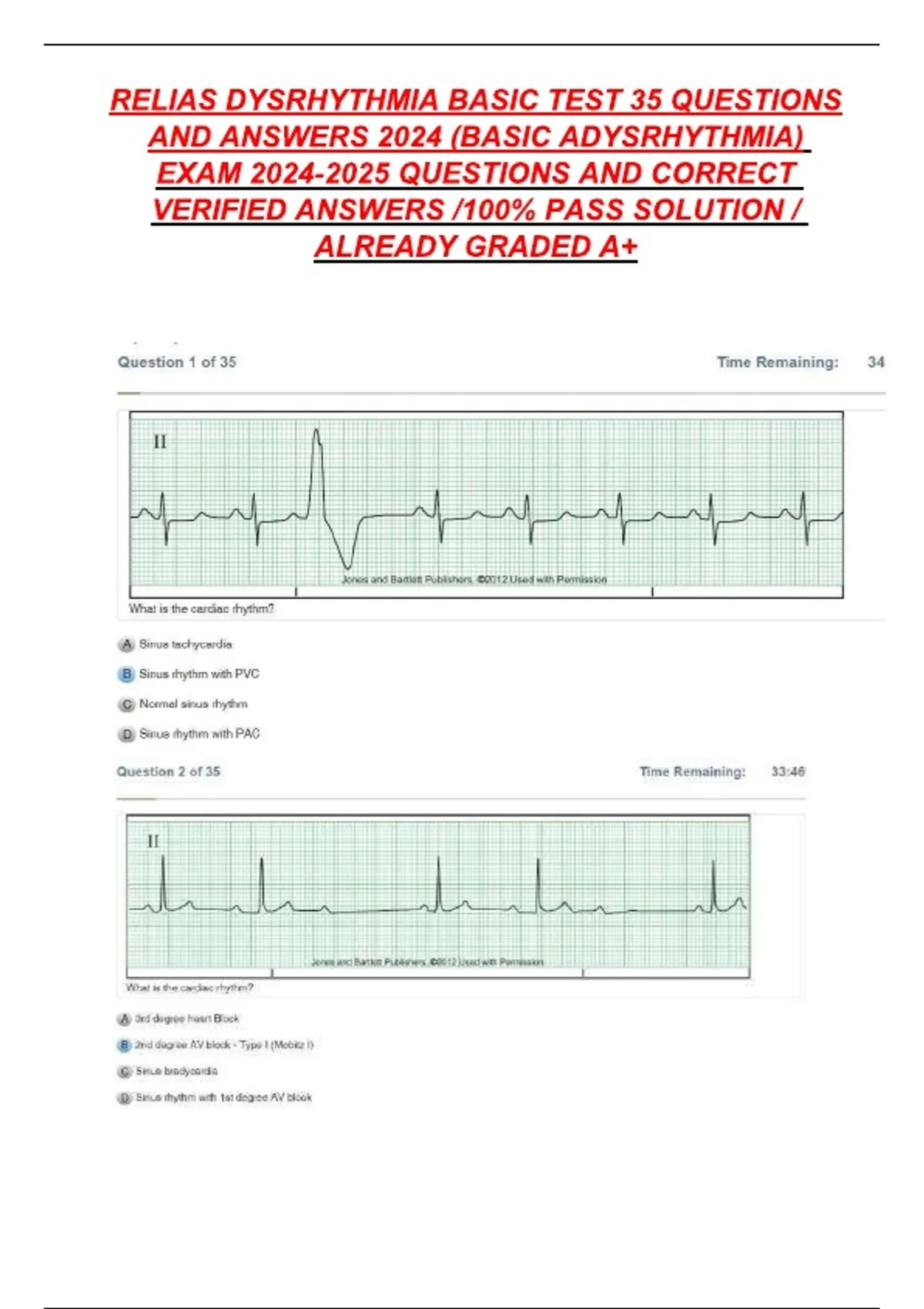Relias Dysrhythmia Basic Test 2026/2027 – 35 Questions & Answers | Verified Correct Solutions