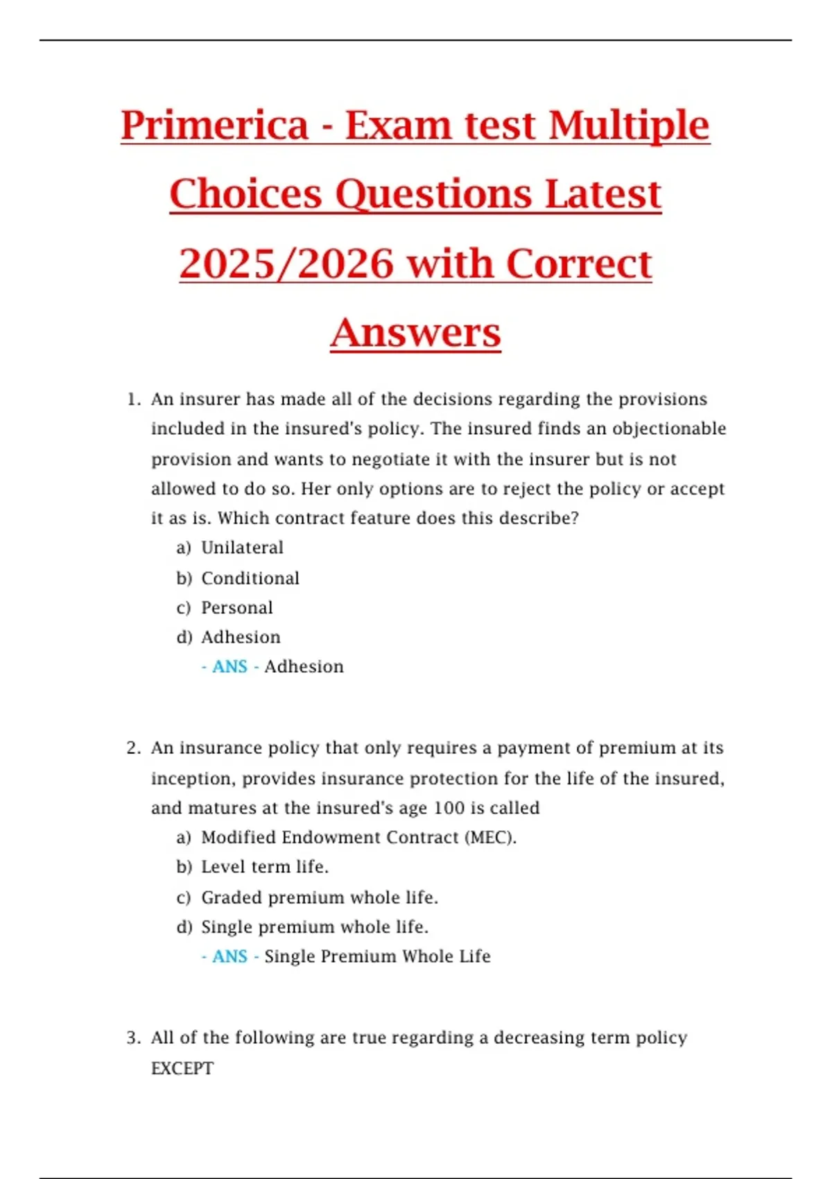 - ANS - Convertible Term Policy