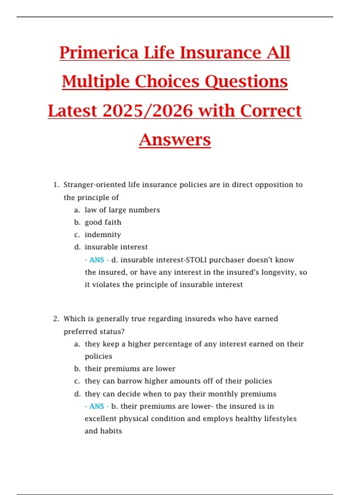 Primerica Life Insurance All Multiple Choices Questions Latest 2025/2026 with Correct Answers Primerica Life Insurance All Multiple Choices Questions Latest 2025/2026 with Correct Answers Primerica Life Insurance All Multiple Choices Questions Latest 2025/2026 with Correct Answers Primerica Life Insurance All Multiple Choices Questions Latest 2025/2026 with Correct Answers