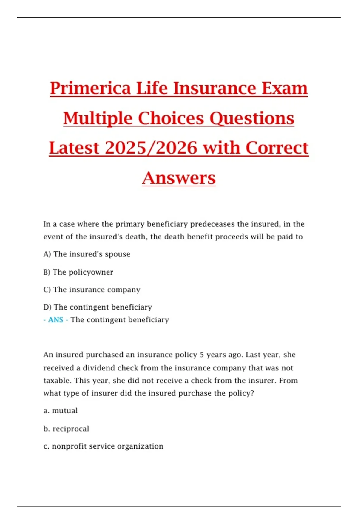- ANS - The contingent beneficiary