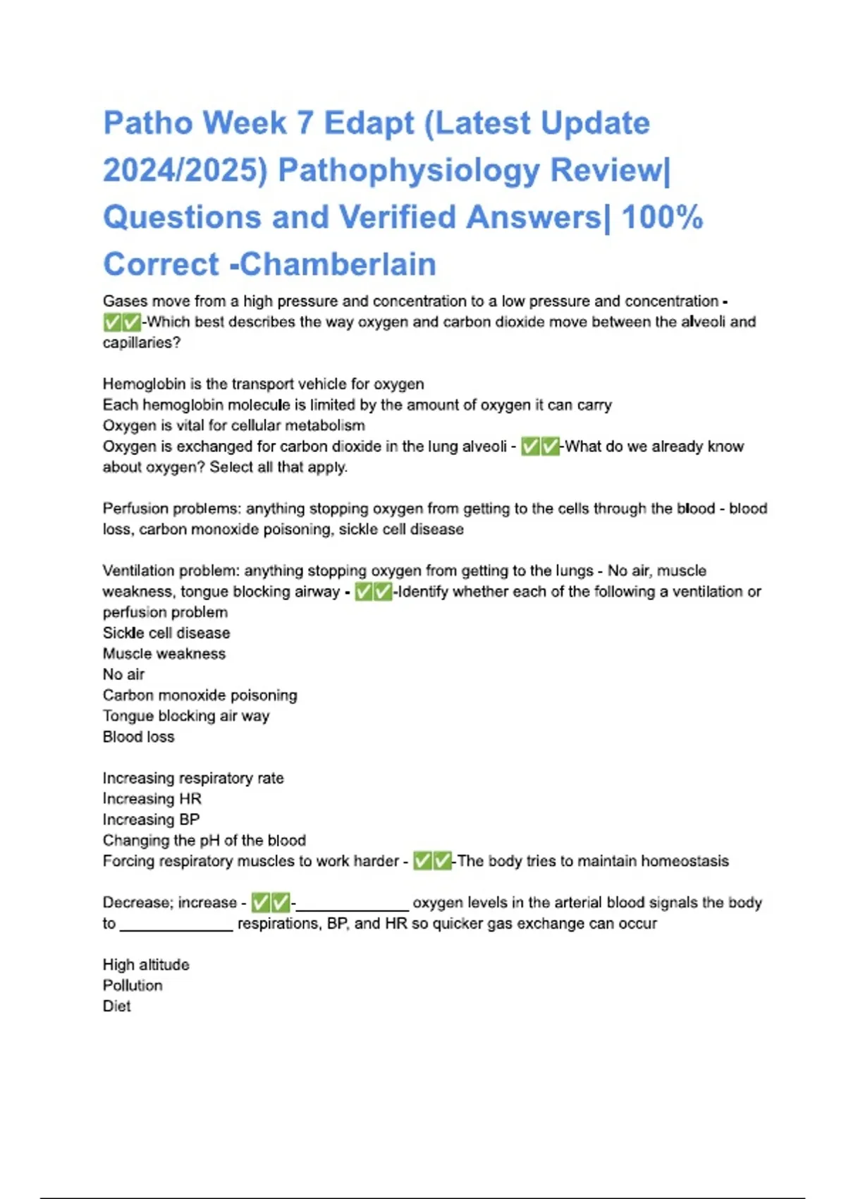 NR283 Week 7 Pathophysiology Edapt – Gas Exchange | Verified Questions and 100% Correct Answers 2024–2025 – Chamberlain