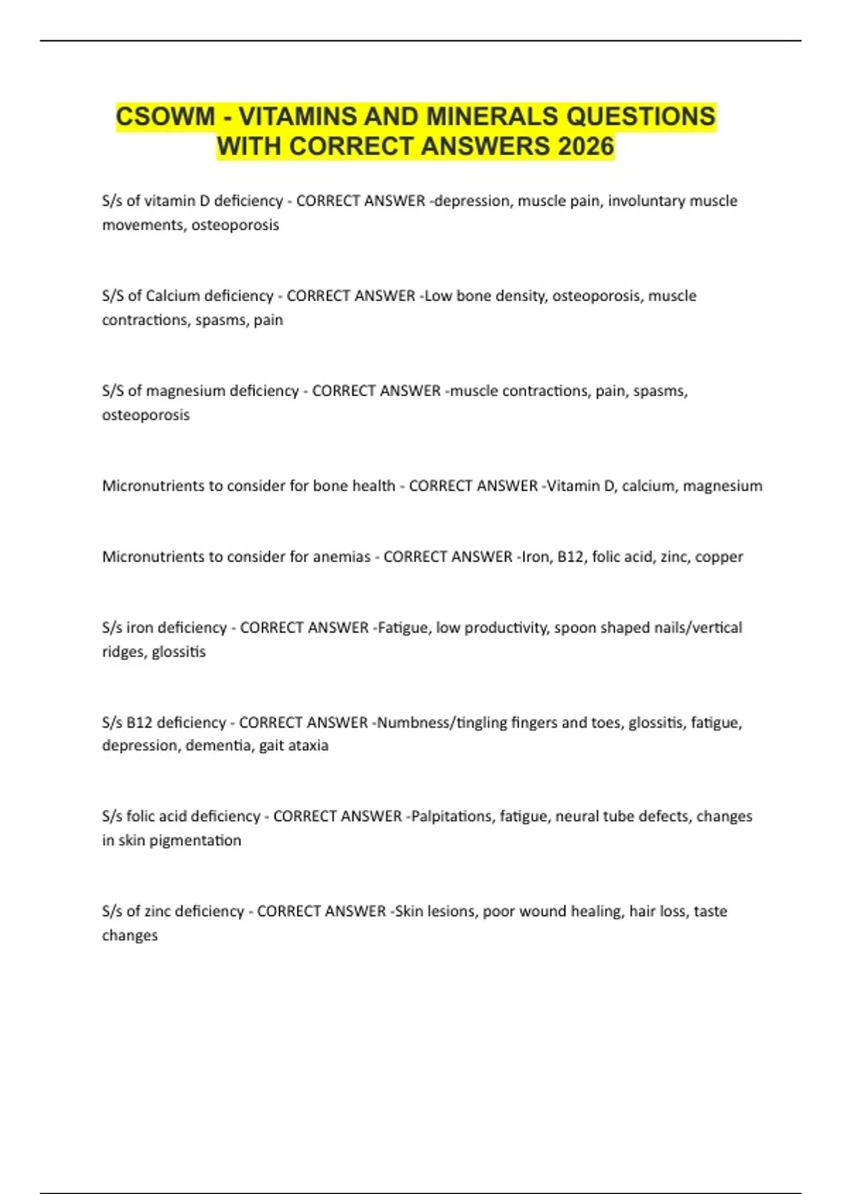 CSOWM - VITAMINS AND MINERALS QUESTIONS