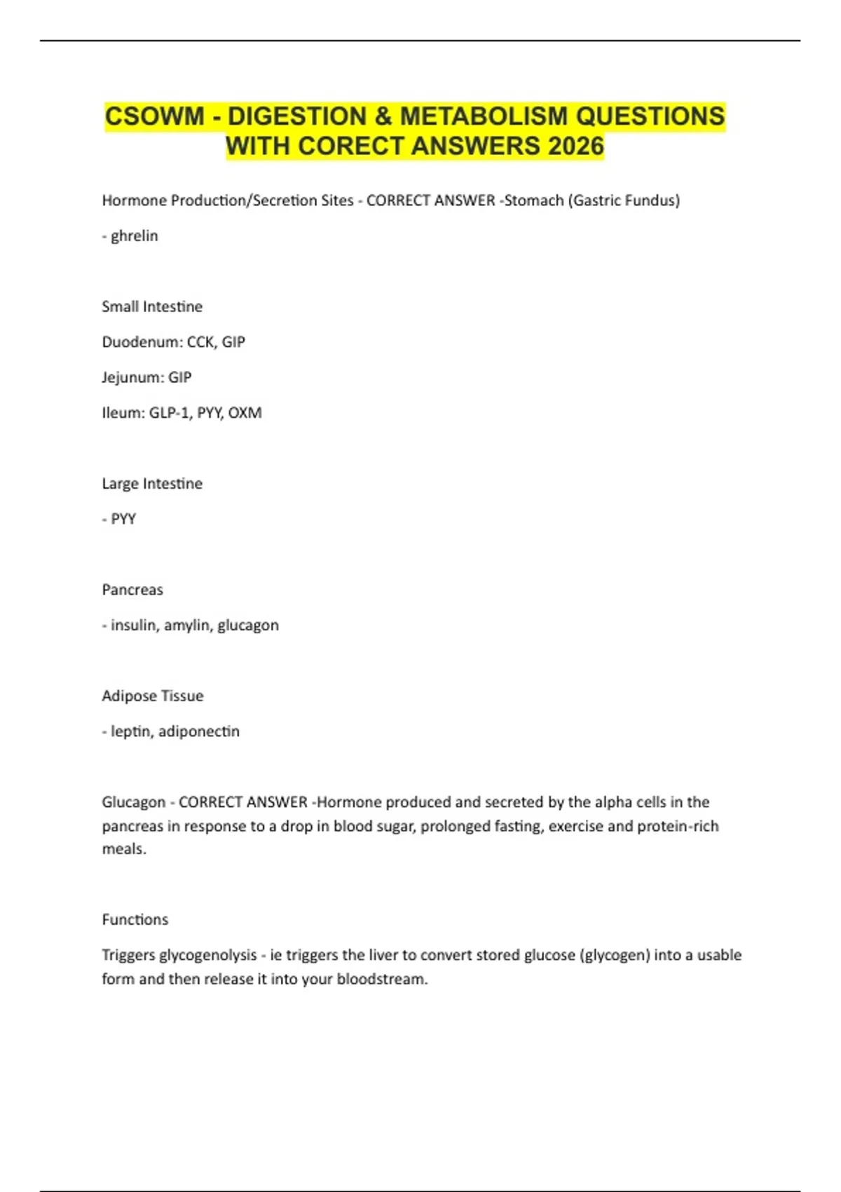 CSOWM - DIGESTION & METABOLISM QUESTIONS