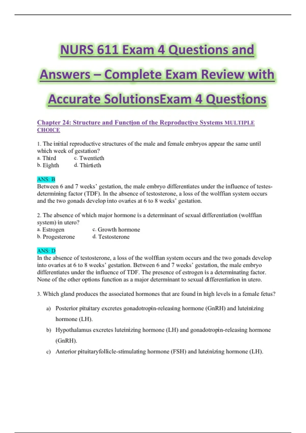 3. Wh𝔦ch gland produces the assoc𝔦ated hormones that are found 𝔦n h𝔦gh levels 𝔦n a female fetus?