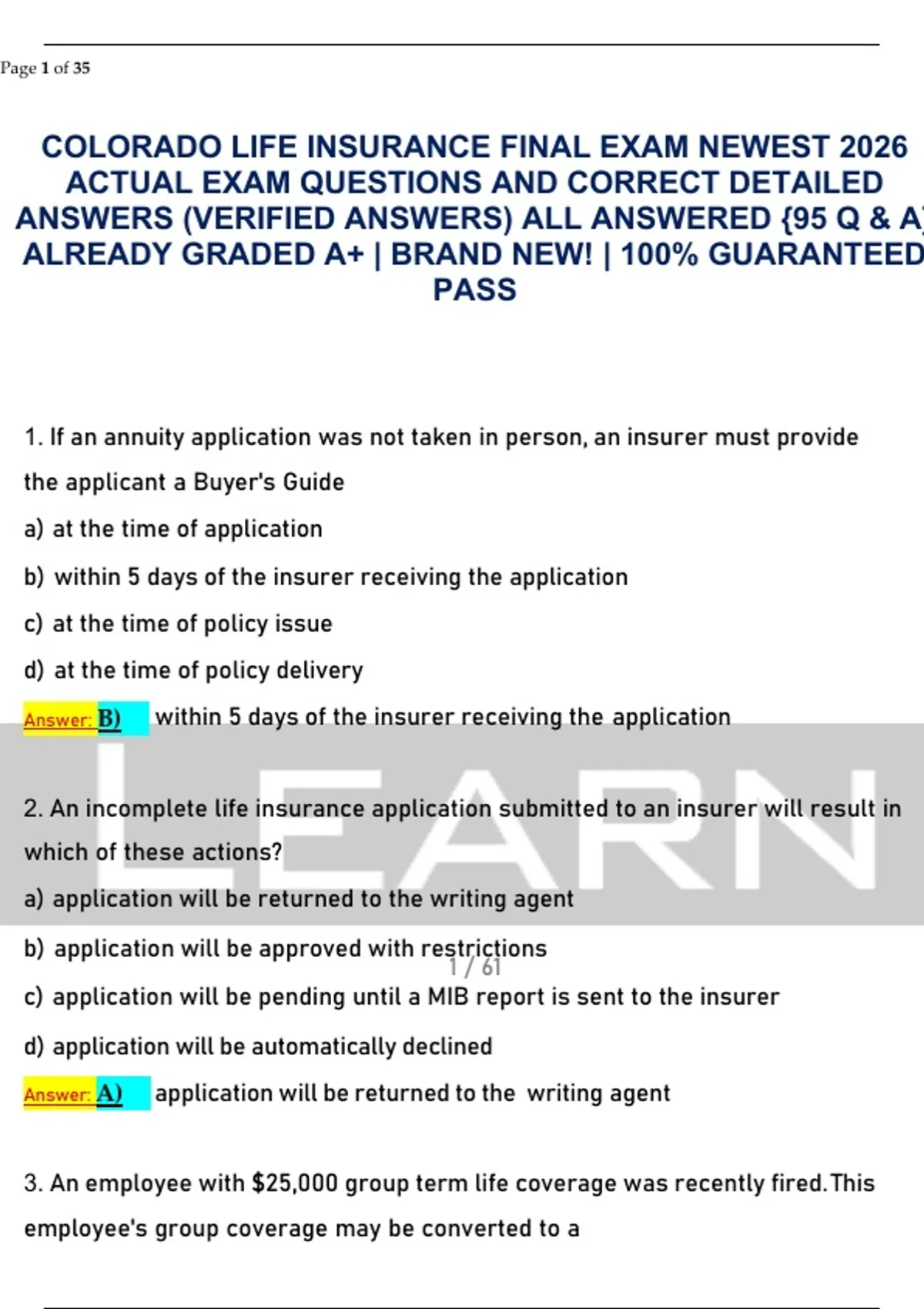 COLORADO LIFE INSURANCE FINAL EXAM NEWEST 2026