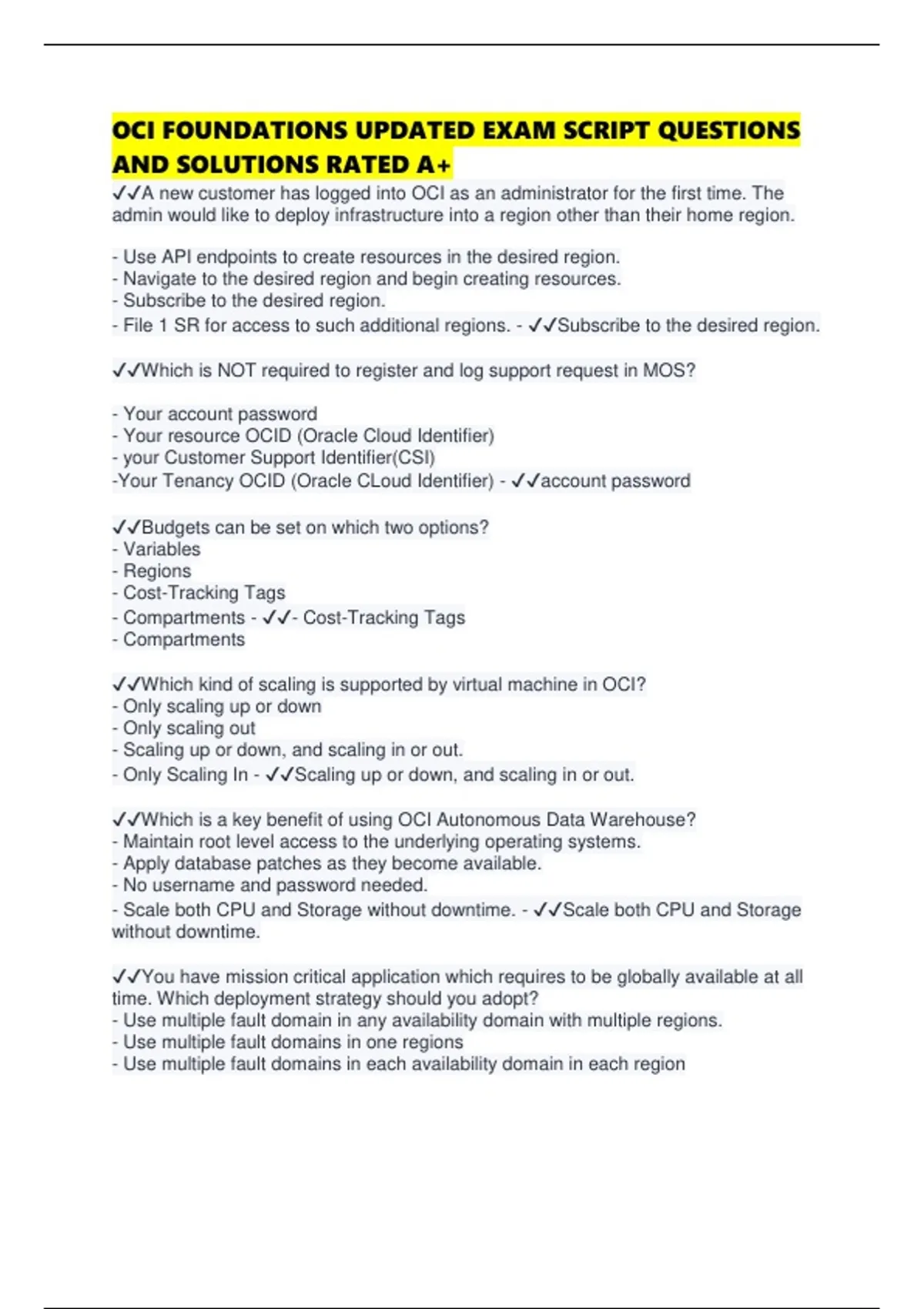 ,- Use multiple availability domains in one Region - ✔✔Use multiple fault domain in any