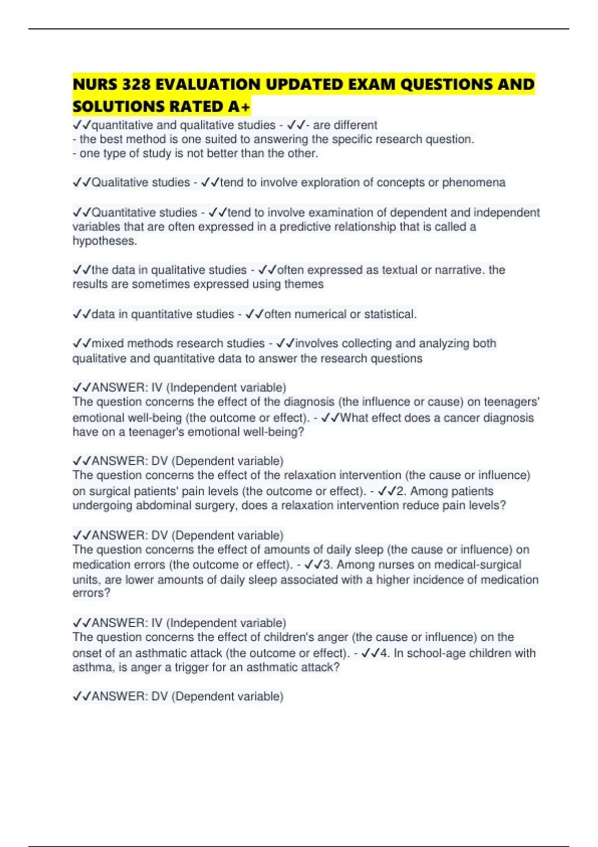 NURS 328 EVALUATION UPDATED EXAM QUESTIONS AND SOLUTIONS RATED A+
