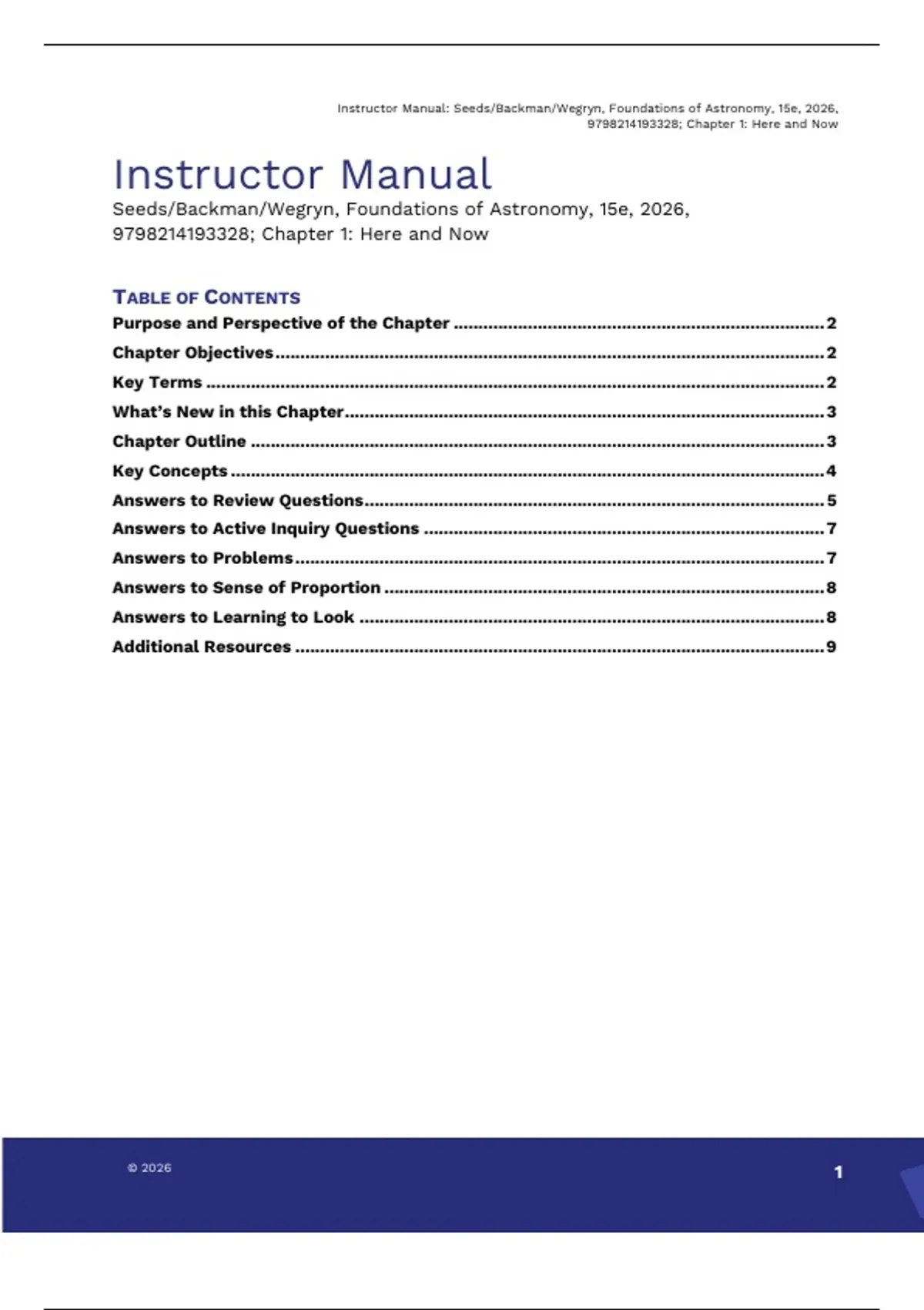 , Instructor Manual: Seeds/Backman/Wegryn, Foundations of Astronomy, 15e, 2026,