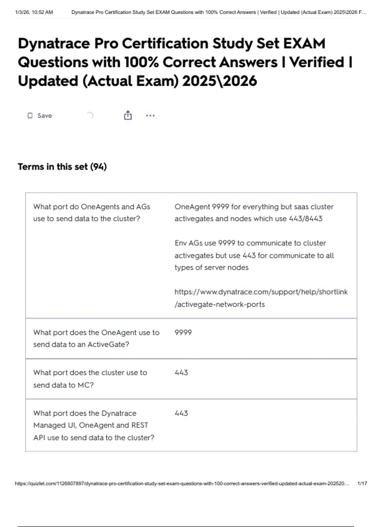 1/3/26, 10:52 AM Dynatrace Pro Certification Study Set EXAM Questions with 100% Correct Answers | Verified | Updated (Actual Exam) 2025\2026 F…