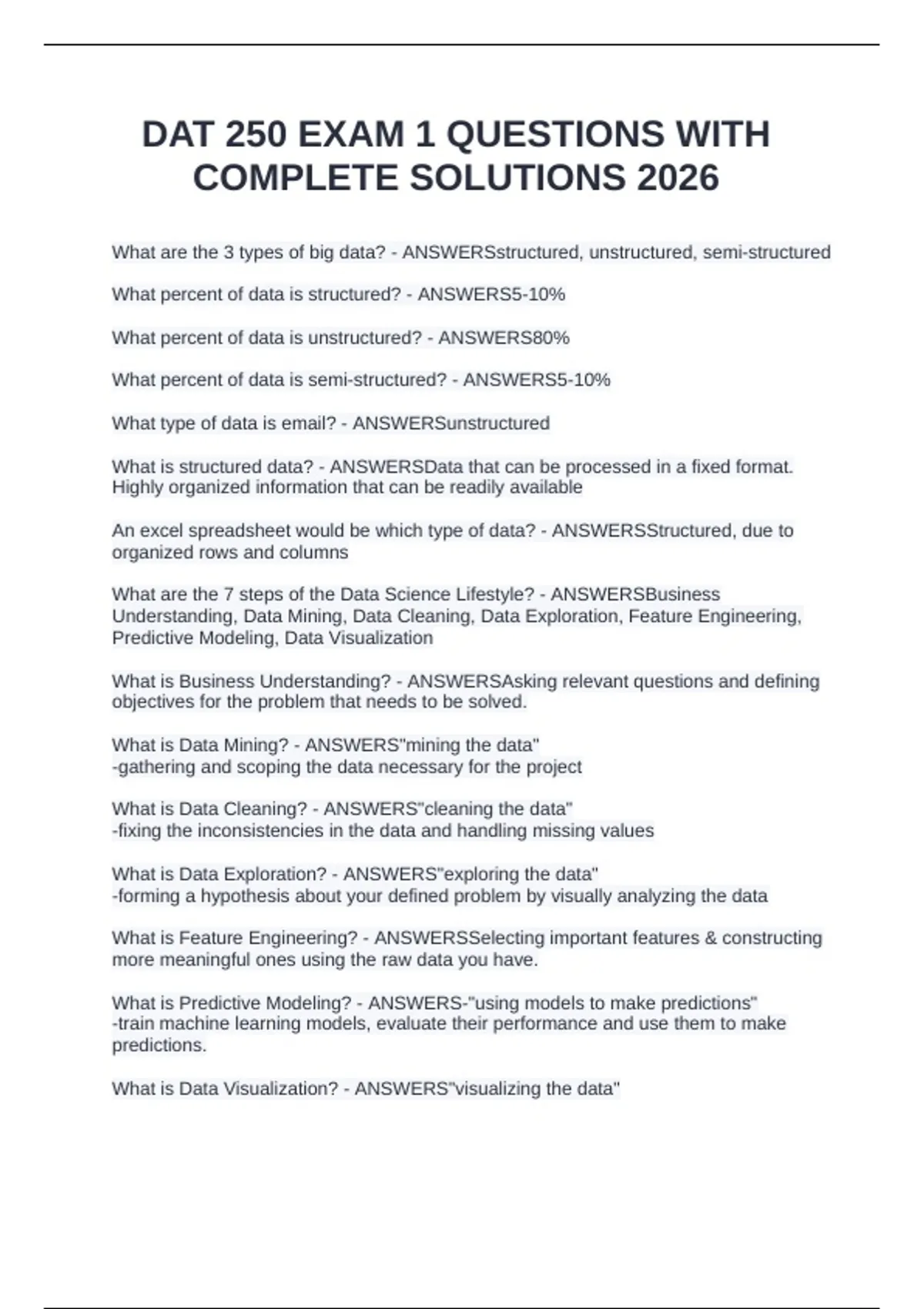 DAT 250 EXAM 1 QUESTIONS WITH COMPLETE SOLUTIONS 2026