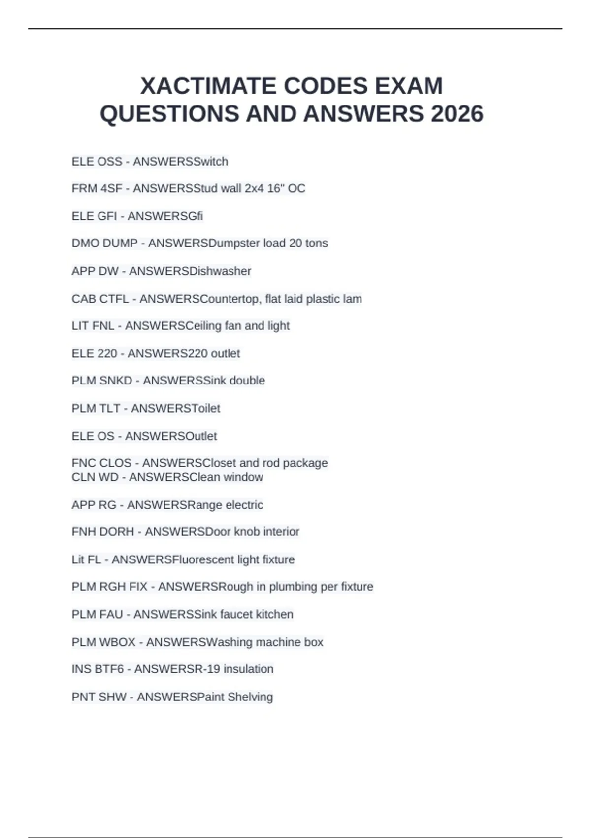 XACTIMATE CODES EXAM QUESTIONS AND ANSWERS 2026