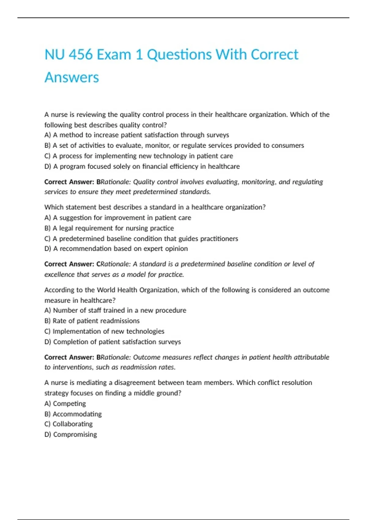 Correct |Answer: |BRationale: |Quality |control |involves |evaluating, |monitoring, |and |regulating |