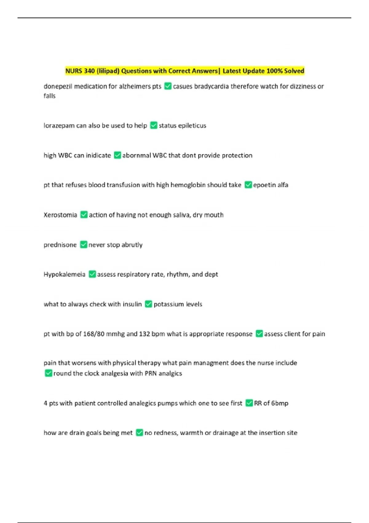 NURS 340 (lilipad) Questions with Correct Answers| Latest Update 100% Solved