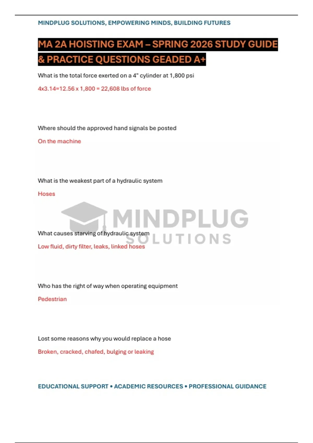 MA 2A HOISTING EXAM – SPRING 2026 STUDY GUIDE