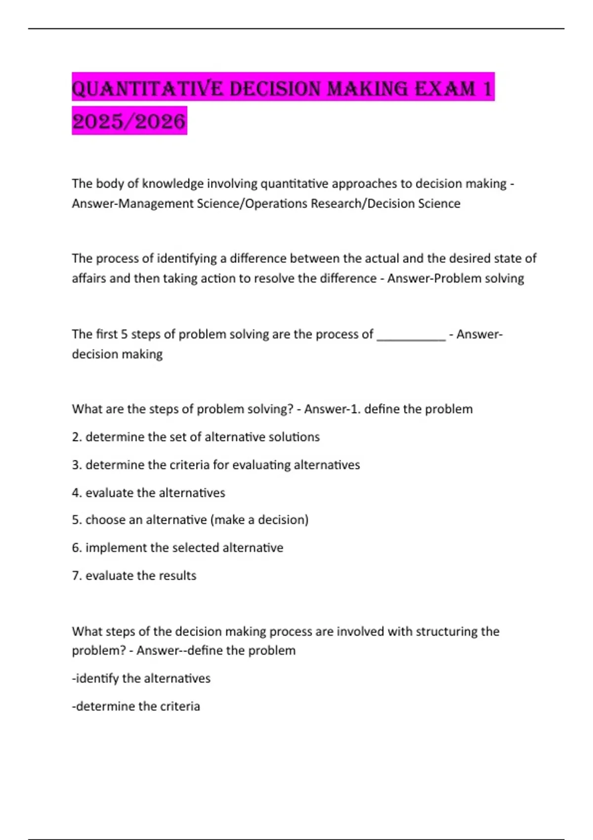 What are the steps of problem solving? - Answer-1. define the problem