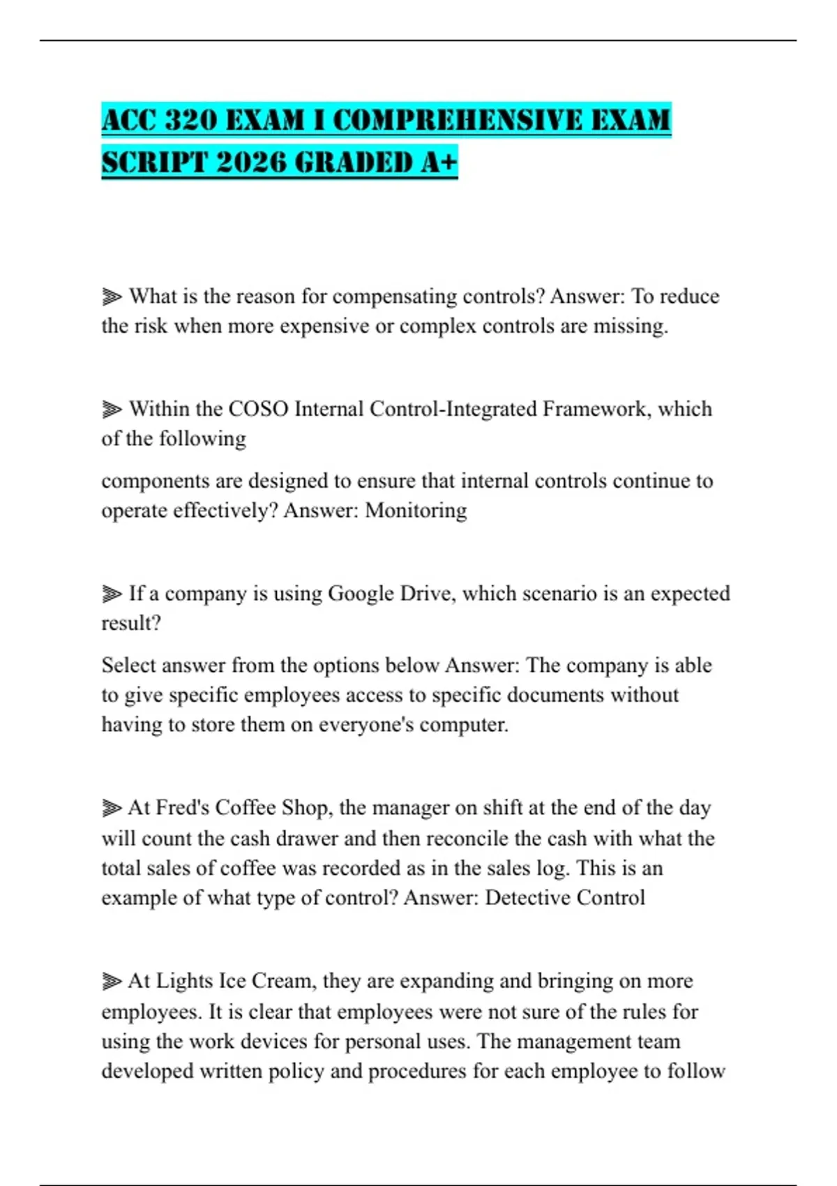 ACC 320 EXAM I COMPREHENSIVE EXAM SCRIPT 2026 GRADED A