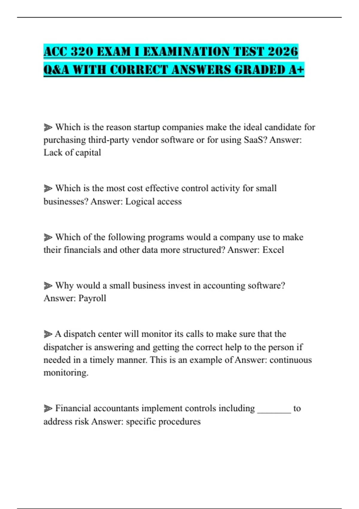 Q&A WITH CORRECT ANSWERS GRADED A+