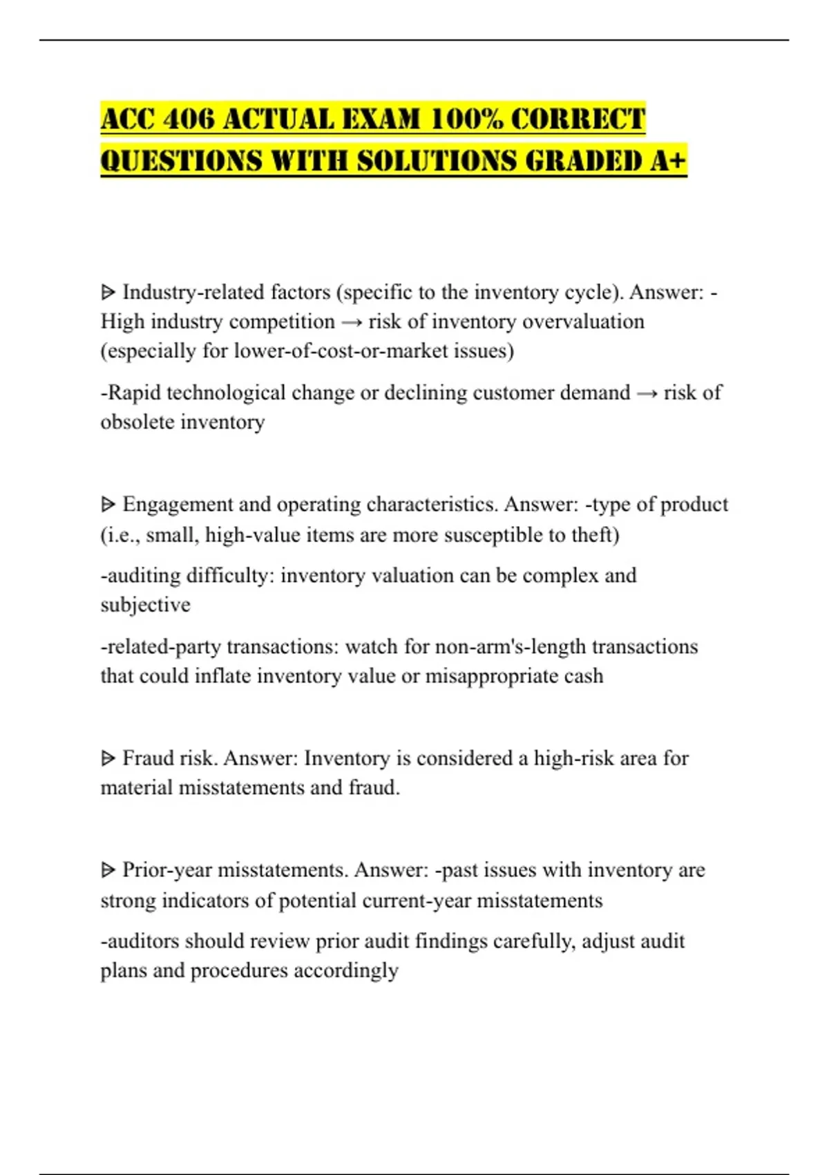 ⩥ Prior-year misstatements. Answer: -past issues with inventory are