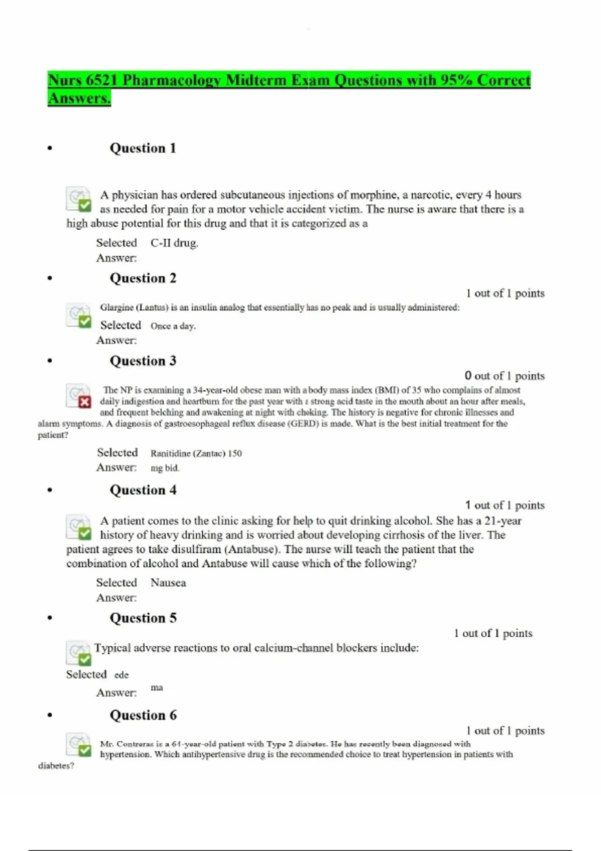 Nurs 6521 Pharmacology Midterm Exam Questions with 95% Correct AnswersNurs 6521 Pharmacology Midterm Exam Questions with 95% Correct Answers