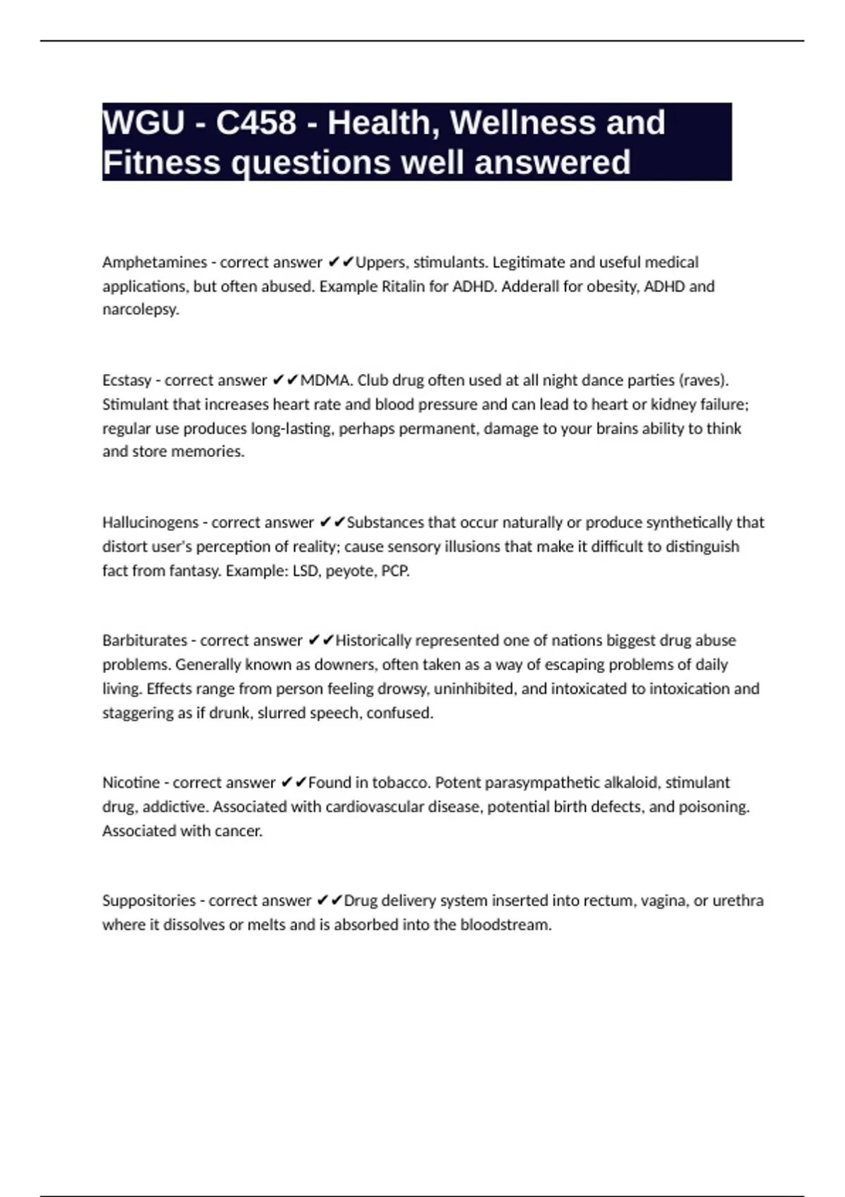 WGU - C458 - Health, Wellness and Fitness questions well answered