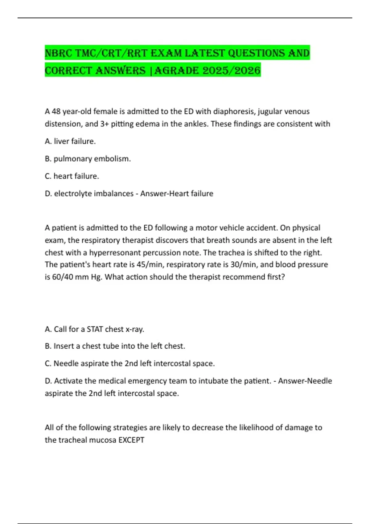 D. Insert a chest tube - Answer-Insert a chest tube