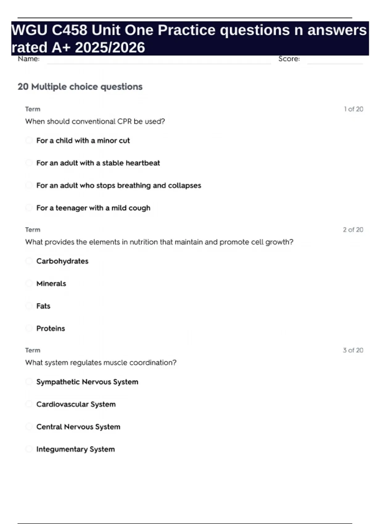 WGU C458 Unit One Practice questions n answers rated A+ 2025/2026