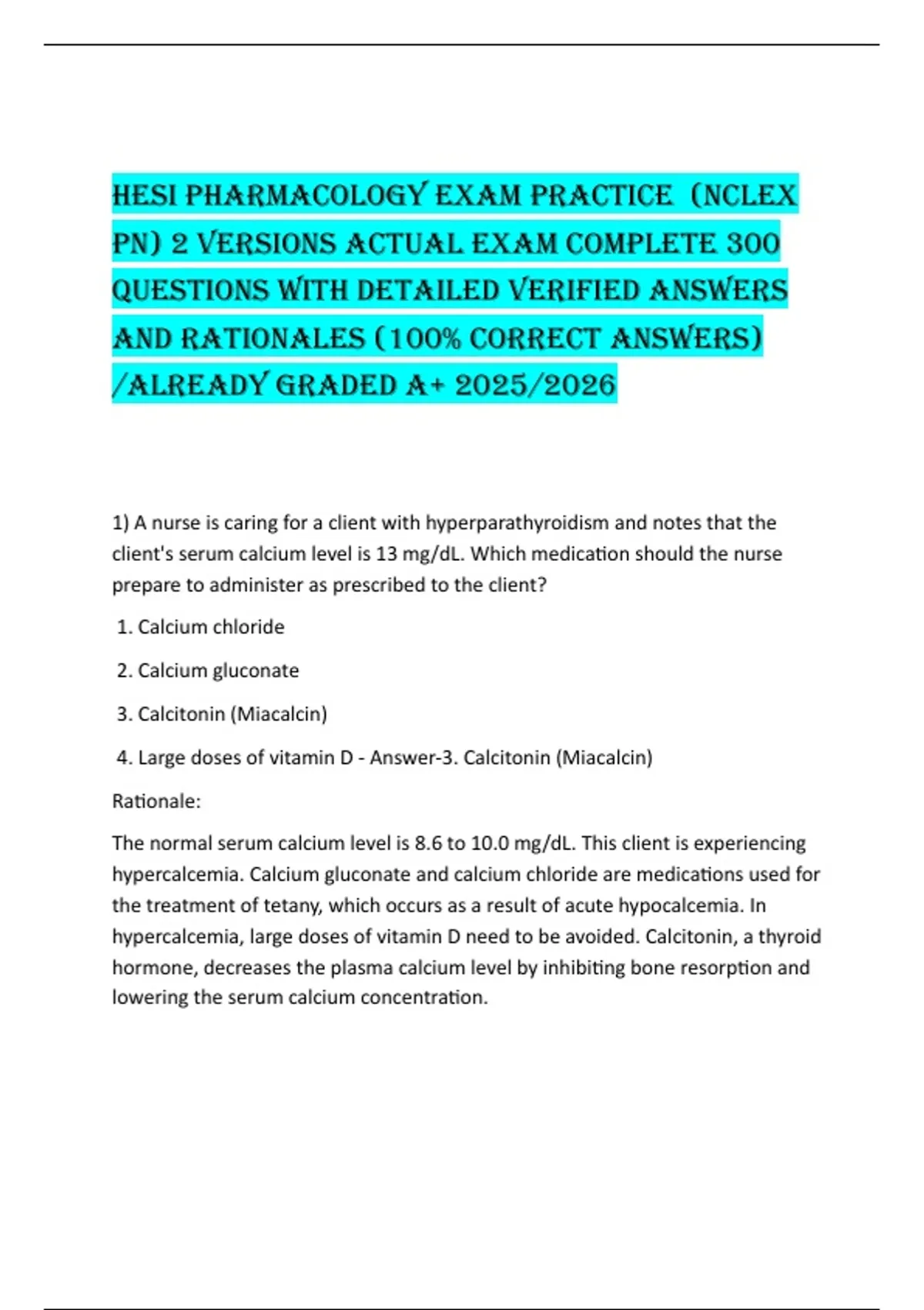 HESI PHarmacology Exam PractIcE (NclEx PN) 2 VErSIoNS actUal Exam comPlEtE 300 QUEStIoNS WItH DEtaIlED VErIFIED aNSWErS aND ratIoNalES (100% corrEct aNSWErS) /alrEaDy graDED a+ 2025/2026