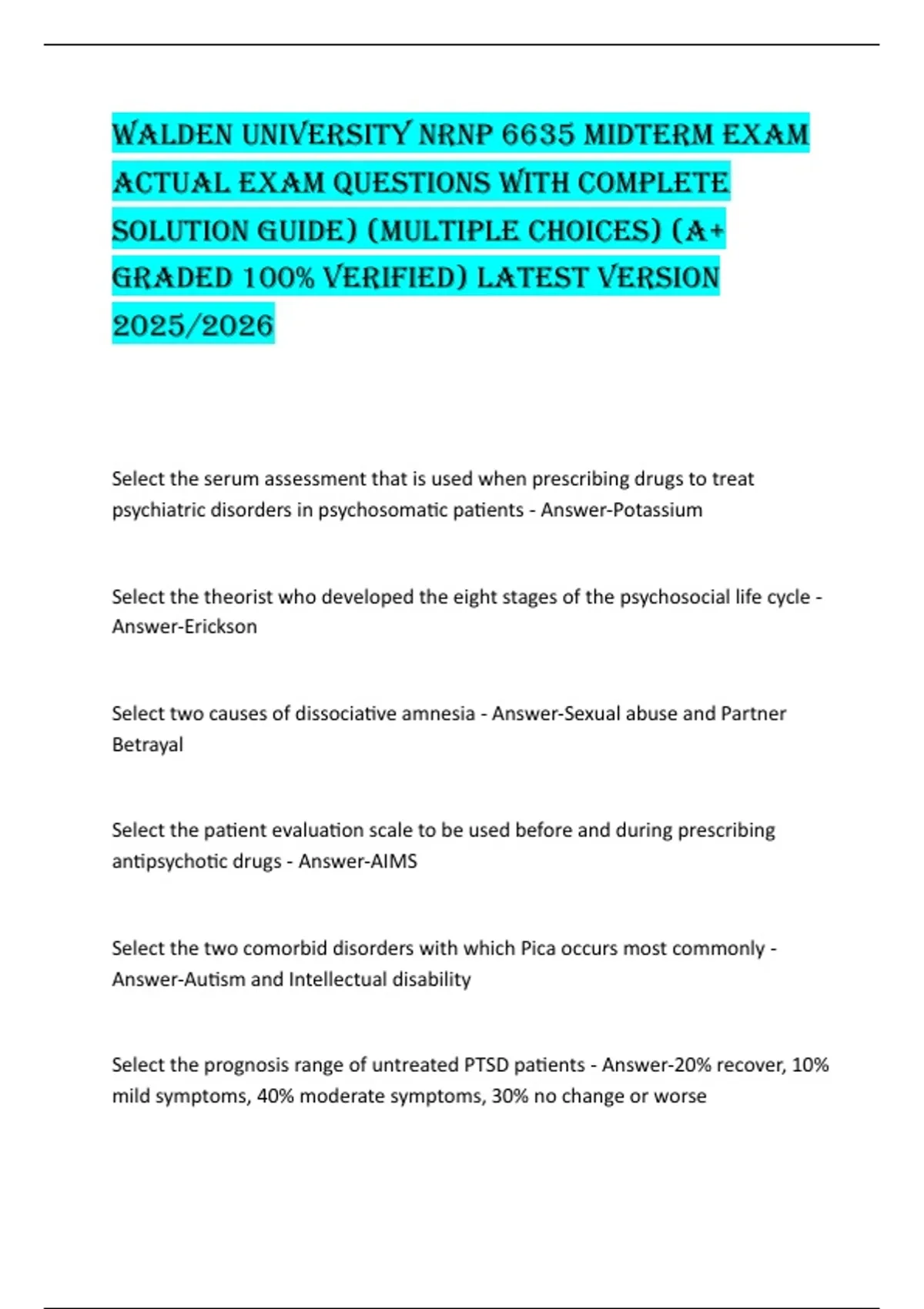 ACTUAL EXAM QUESTIONS WITH COMPLETE