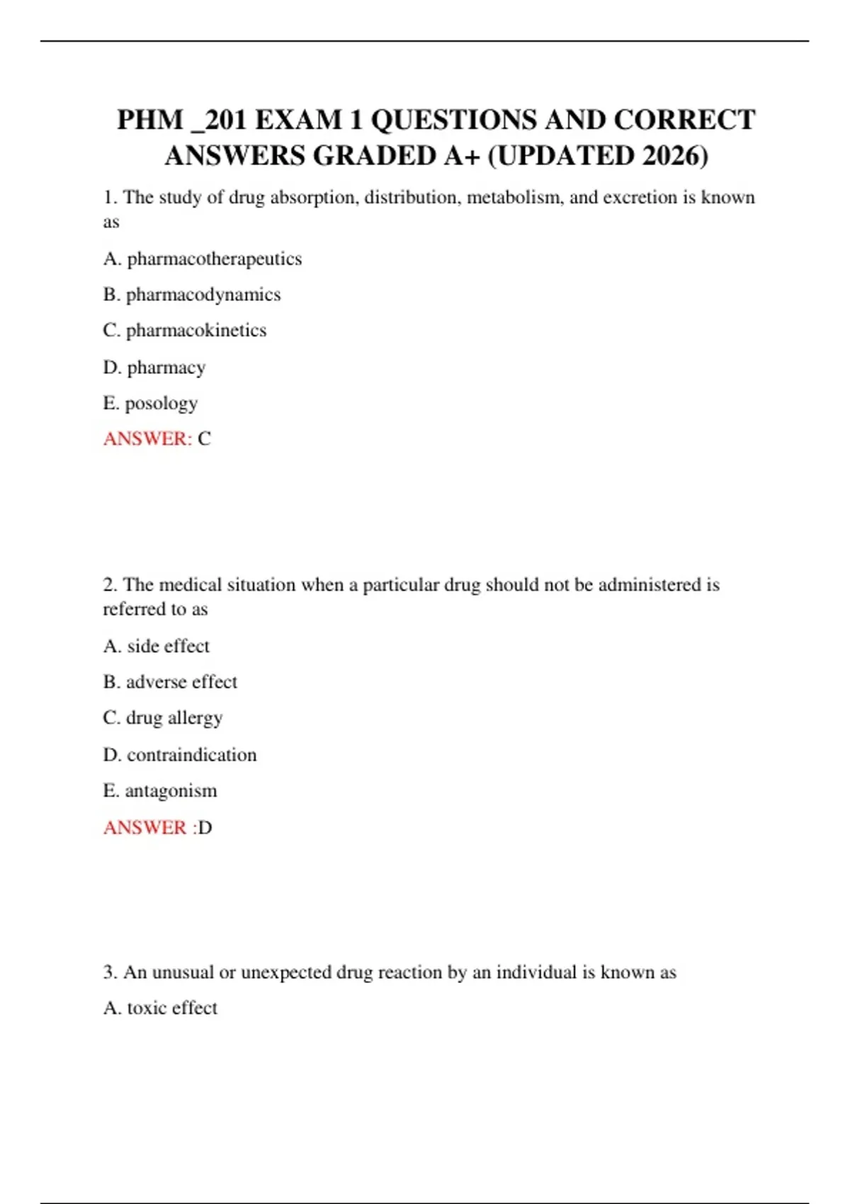 PHM _201 EXAM 1 QUESTIONS AND CORRECT ANSWERS GRADED A+ (UPDATED 2026)