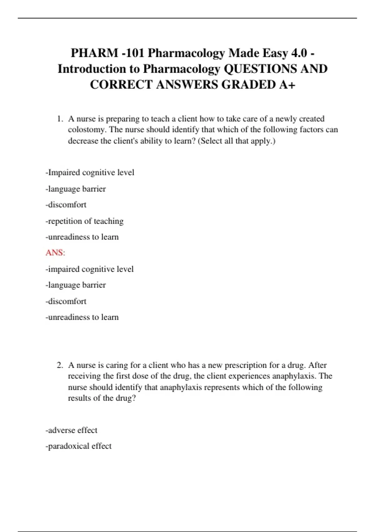 PHARM -101 Pharmacology Made Easy 4.0 -