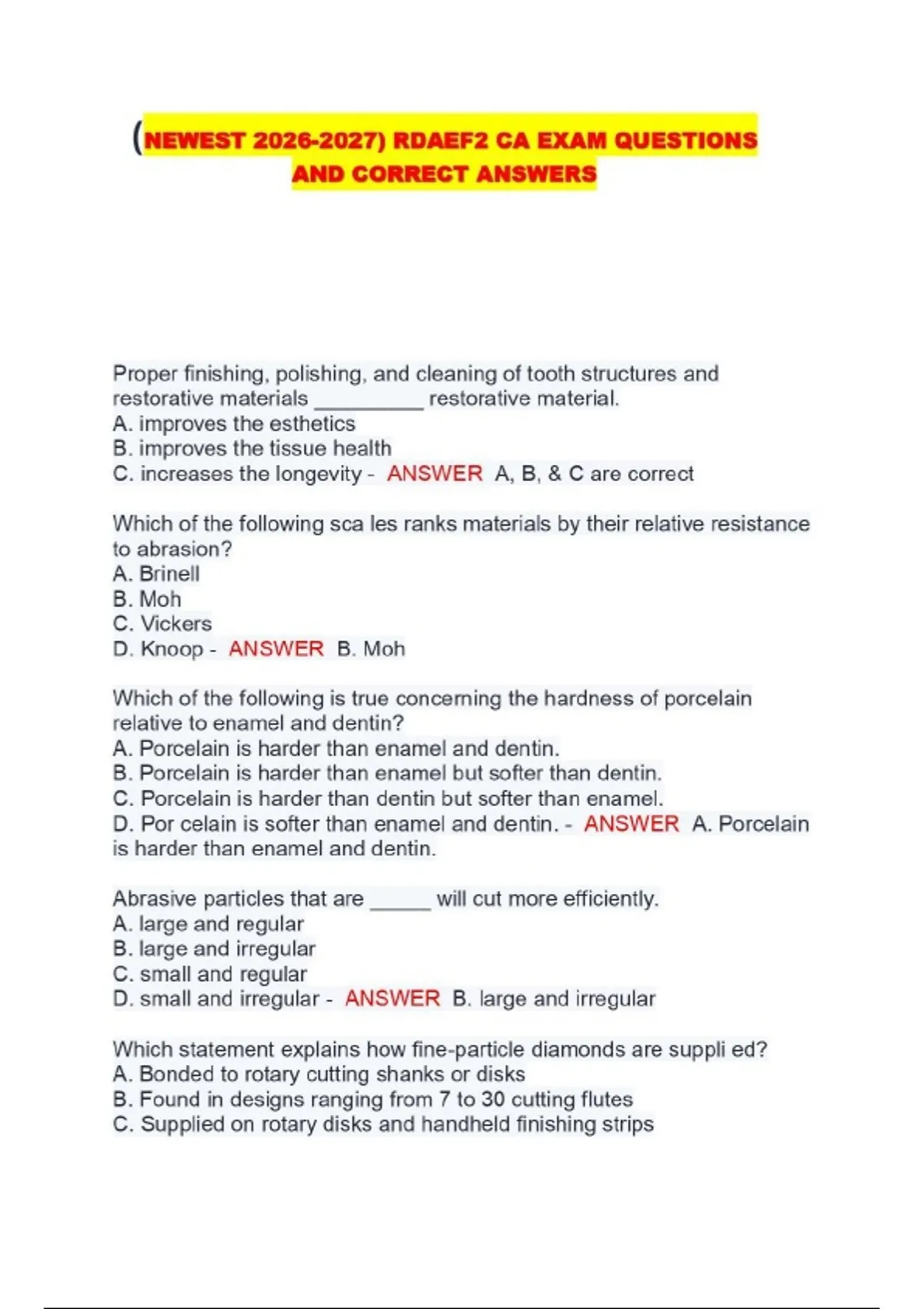 RDAEF2 PACKAGED EXAMS: NEWLY RELEASED QUESTIONS AND ACCURATE ANSWERS FOR THE MOST RECENT EXAM