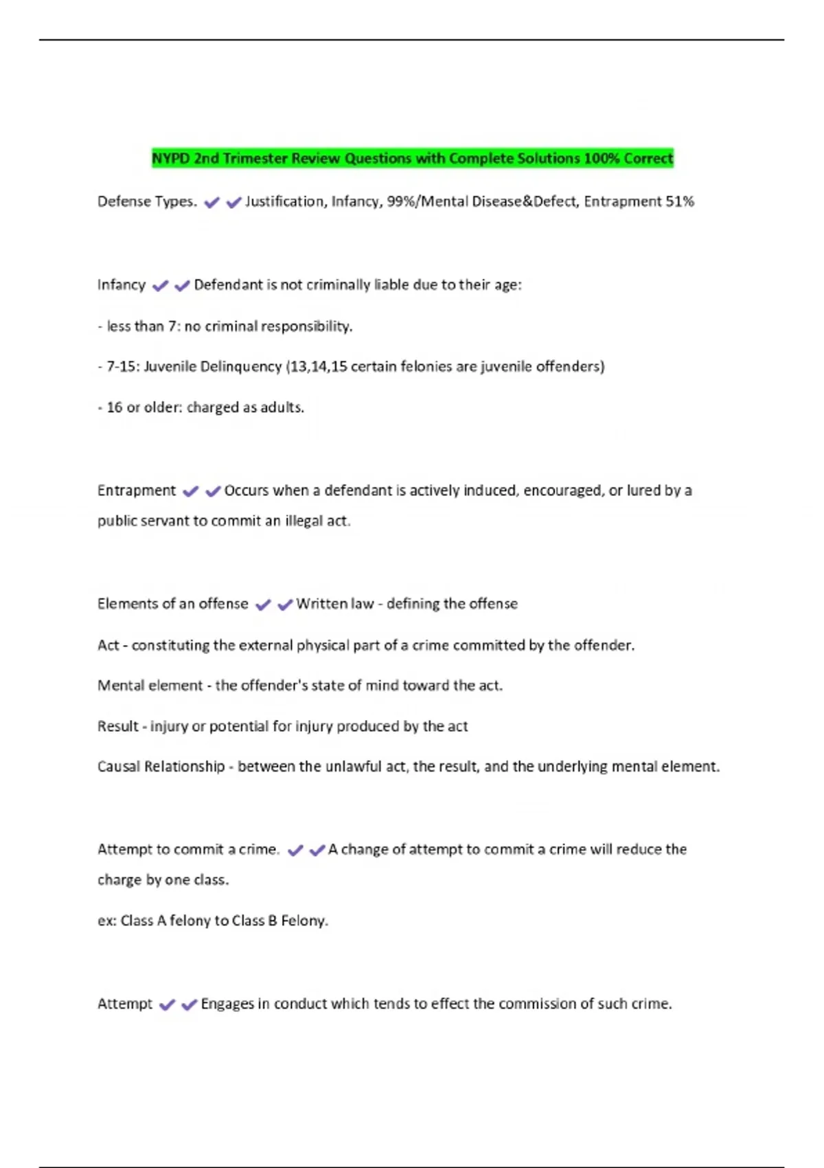 NYPD 2nd Trimester Review Questions with Complete Solutions 100% Correct