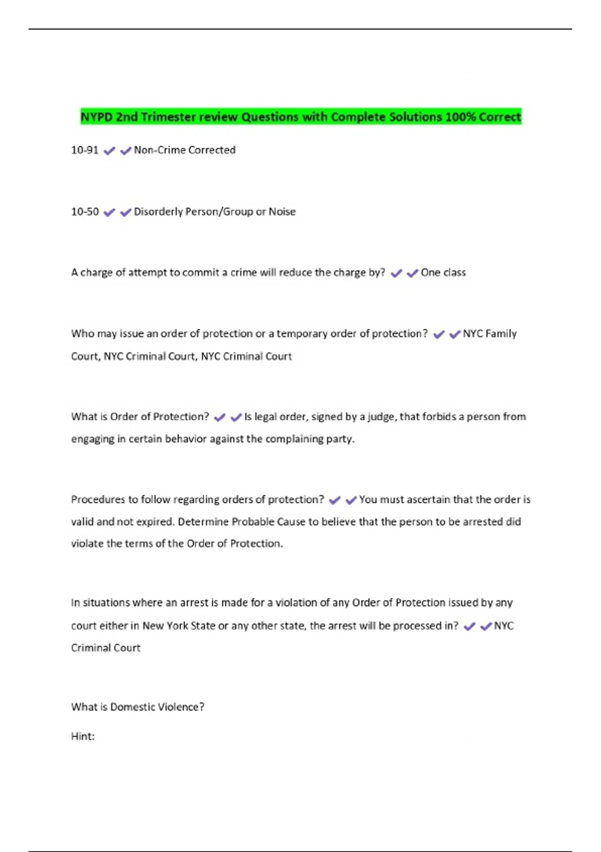 NYPD 2nd Trimester review Questions with Complete Solutions 100% Correct