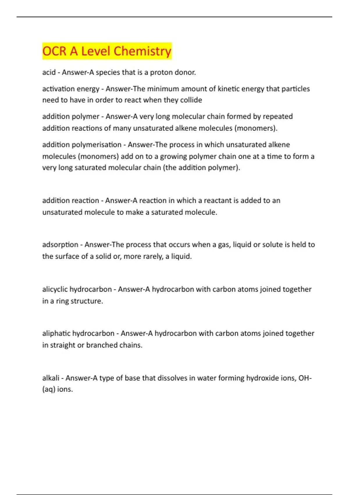 addition polymerisation - Answer-The process in which unsaturated alkene