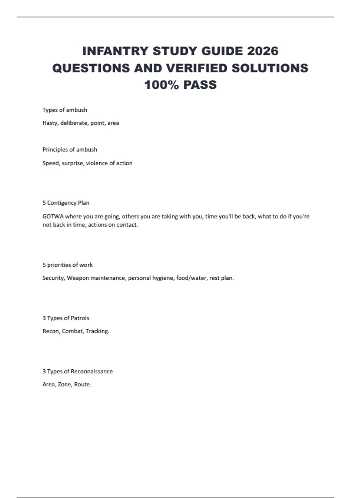 INFANTRY STUDY GUIDE 2026 QUESTIONS AND VERIFIED SOLUTIONS 100% PASS
