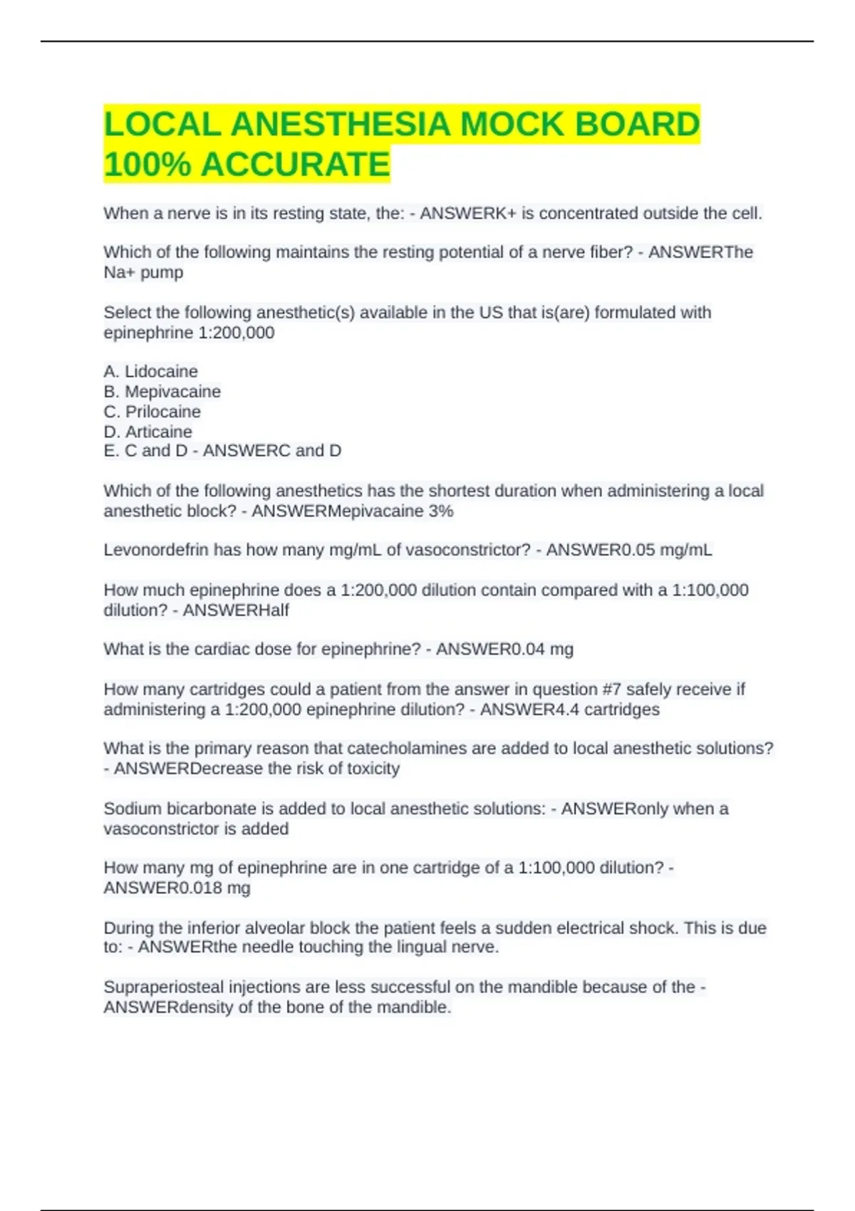 LOCAL ANESTHESIA MOCK BOARD 100% ACCURATE