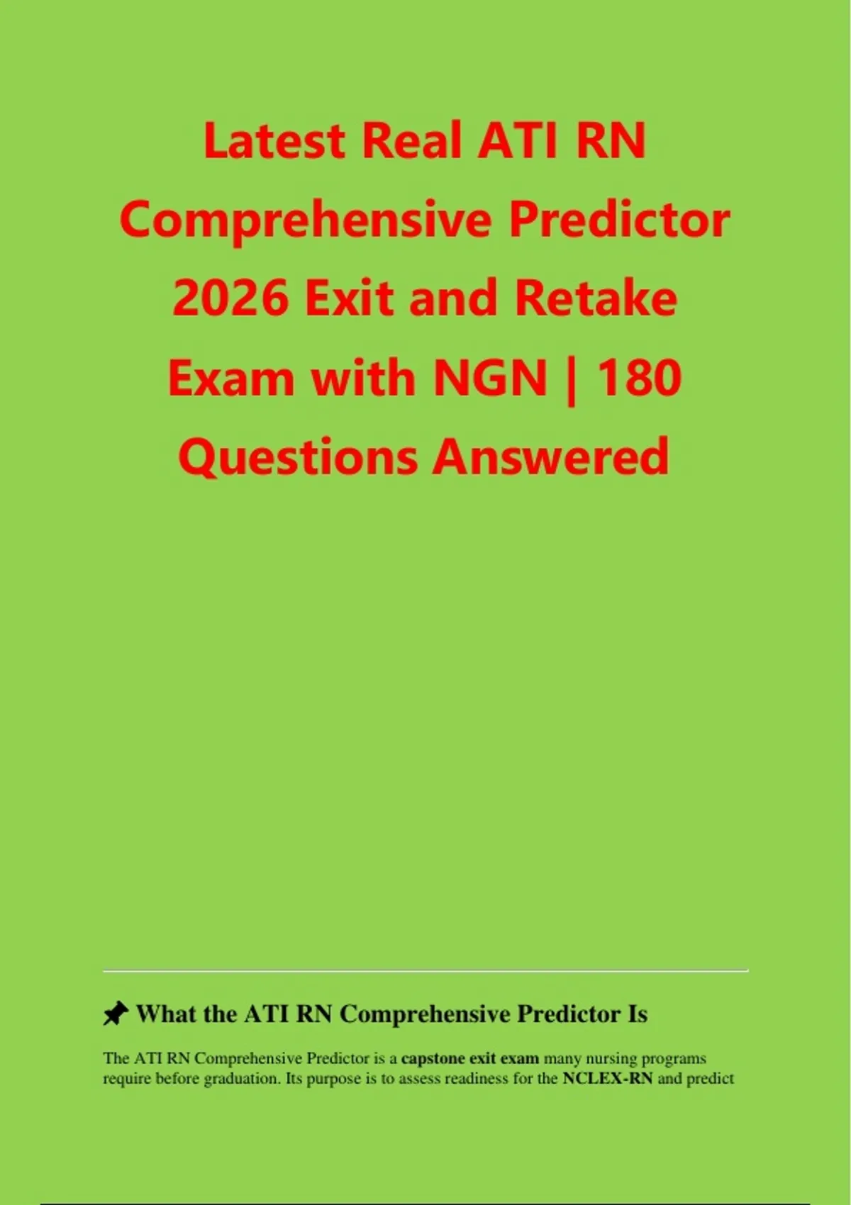 Latest Real ATI RN Comprehensive Predictor 2026 Exit and Retake Exam with NGN | 180 Questions Answered